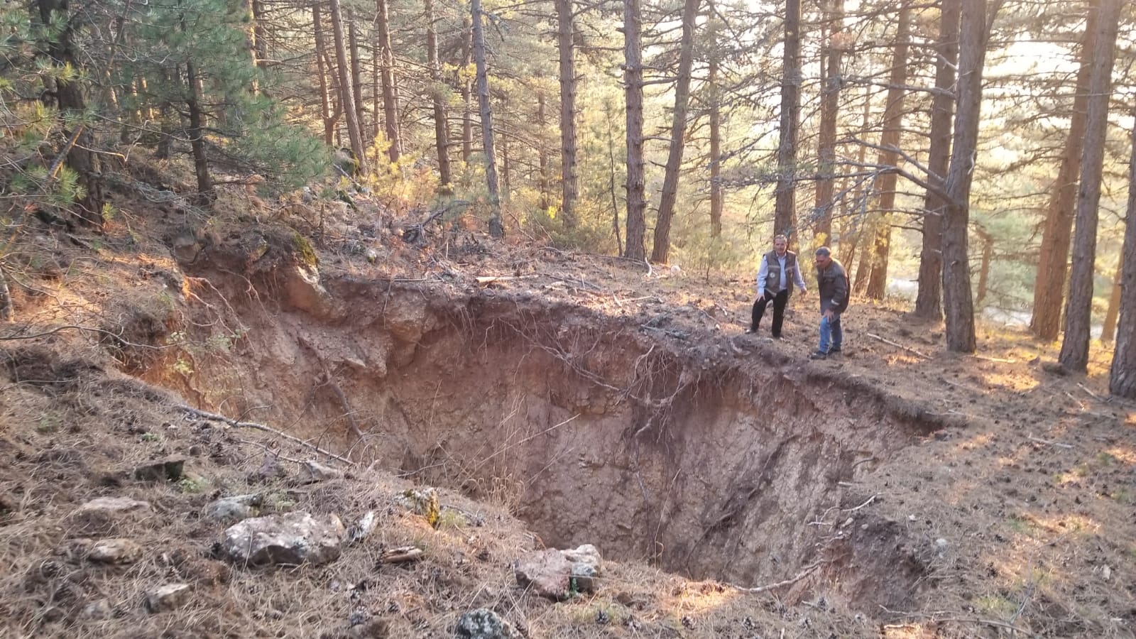Dağın Çampınar mevkisi yakınlarındaki ormanlık alanda oluşan obruk, Spil Dağı Milli Park Müdürlüğü ekiplerince fark edildi.
