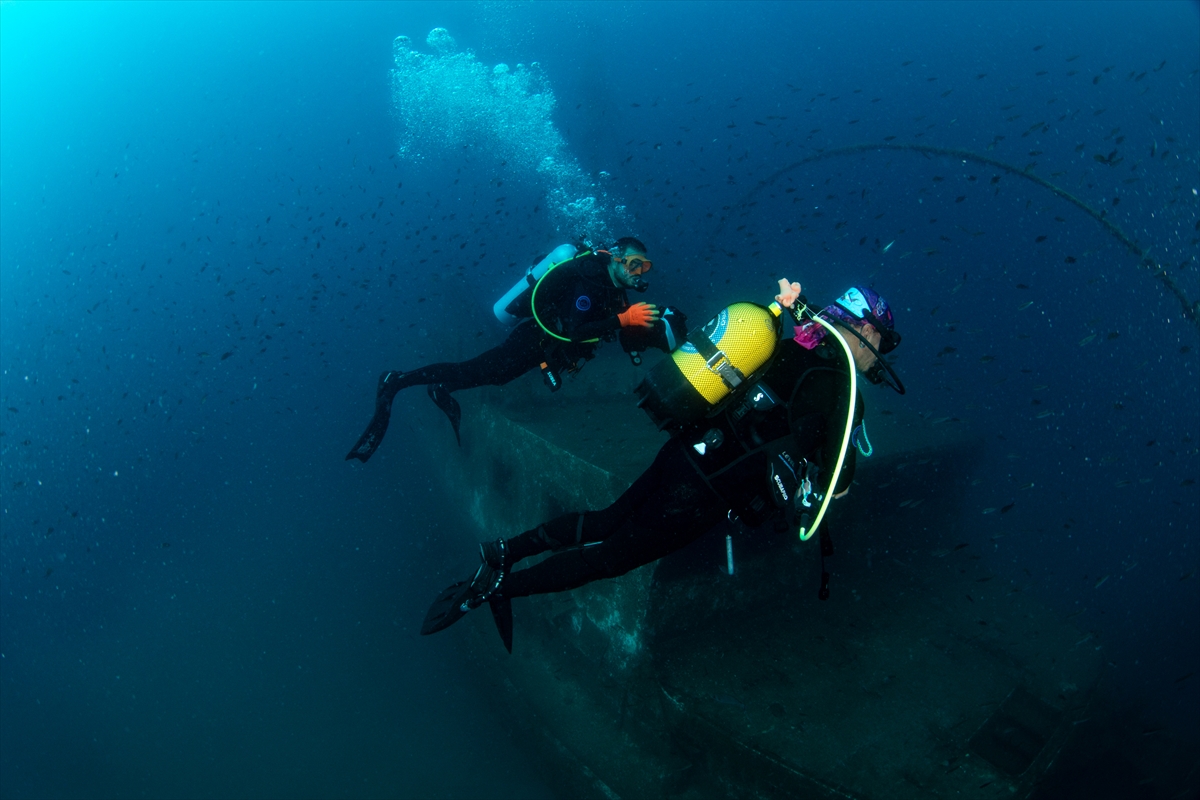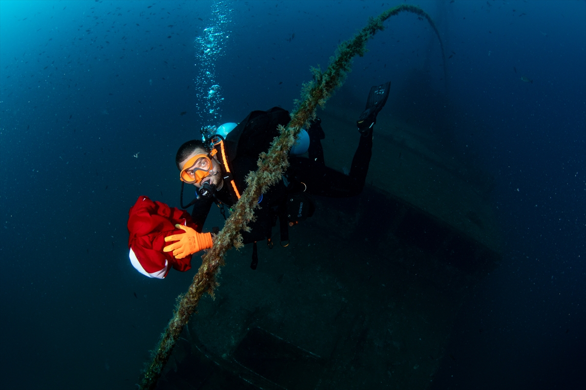 Ege'de su altı güzellikleriyle her yıl binlerce dalış meraklısını ağırlayan Karaburun'da bulunan ve adını kentin kurtuluş gününden alan 9 Eylül Vapuru batığına dalış yapan eğitmenler, yanlarında getirdikleri Türk bayrağını açtı.