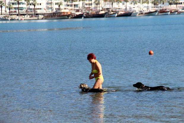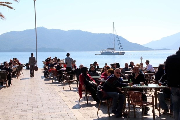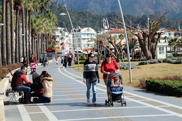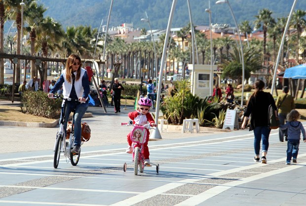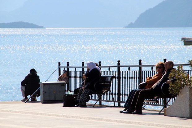 Şubat ayına girilmesine rağmen, Muğla'nın gözde turistik merkezlerinden Marmaris'te sıcak hava etkili oluyor.