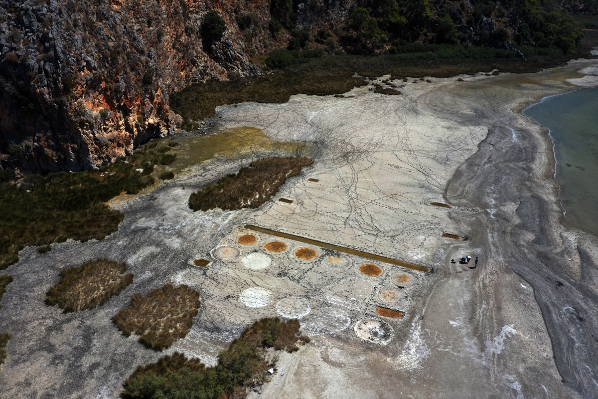 Muğla'nın Ortaca ilçesindeki İztuzu Plajı'nda suların çekilmesiyle tuz tesisi olarak kullanılan 2 bin yıllık tuz sahası gün yüzüne çıktı. UNESCO Dünya Mirası Geçici Listesi'nde yer alan Kaunos Antik Kenti'ndeki çalışmalar sırasında 2005'te ortaya çıkarılan sahada, antik kent kazı heyeti inceleme yaptı. Tesisteki tuz tavalarının içindeki tuz oluşumları tesisin günümüze kadar işlevini yitirmediğini gösterdi.