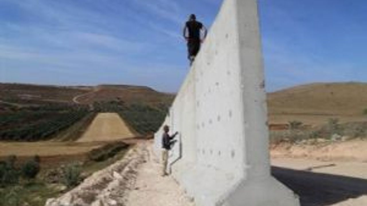 Suriye'ye sınırındaki köyde sınır ihlalleri ve kaçakçılığın önüne geçmek için başlatılan çalışma kapsamında 30 santimetre kalınlığında ve 3 metre genişliğinde betondan duvar örülüyor.