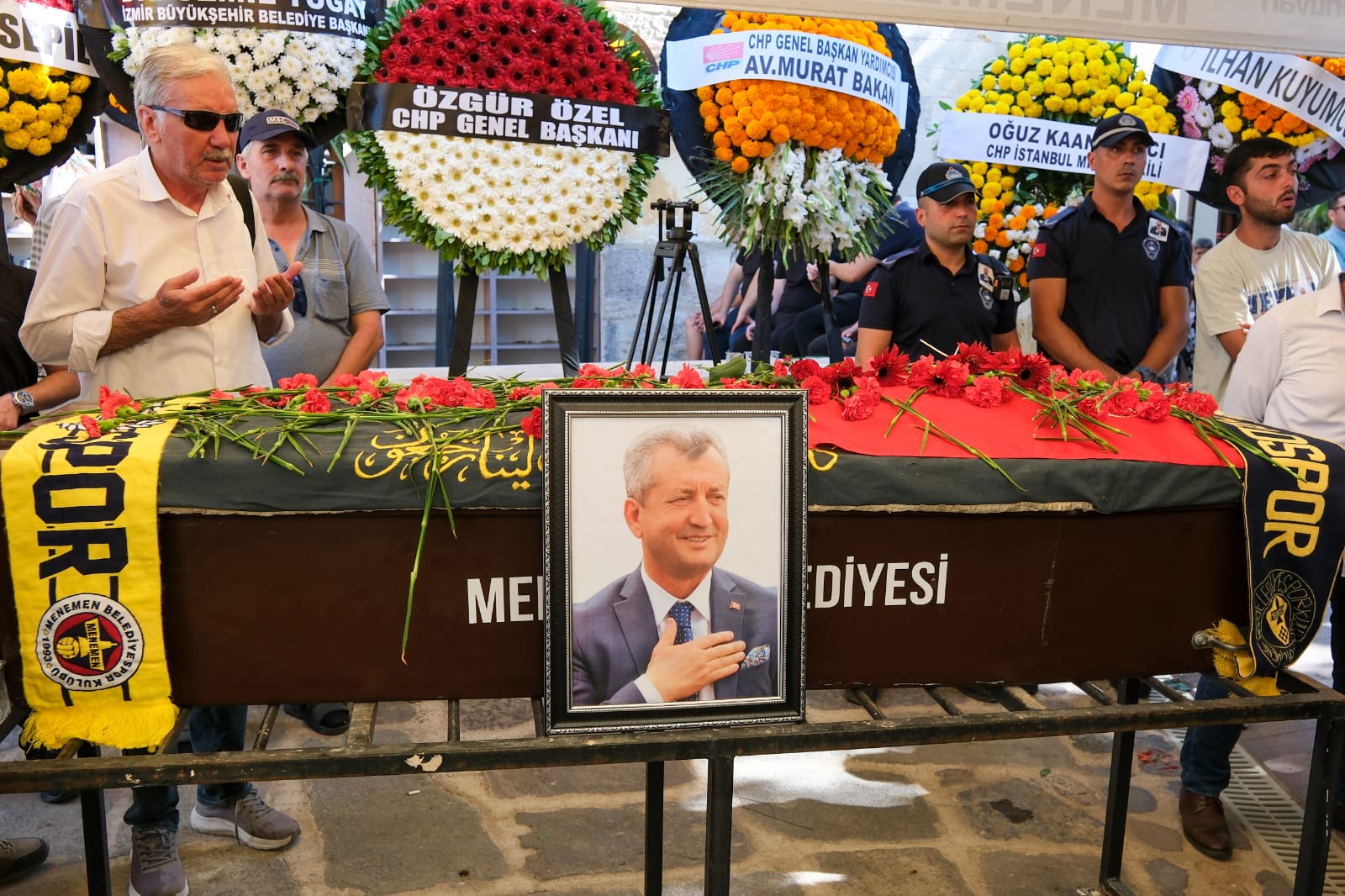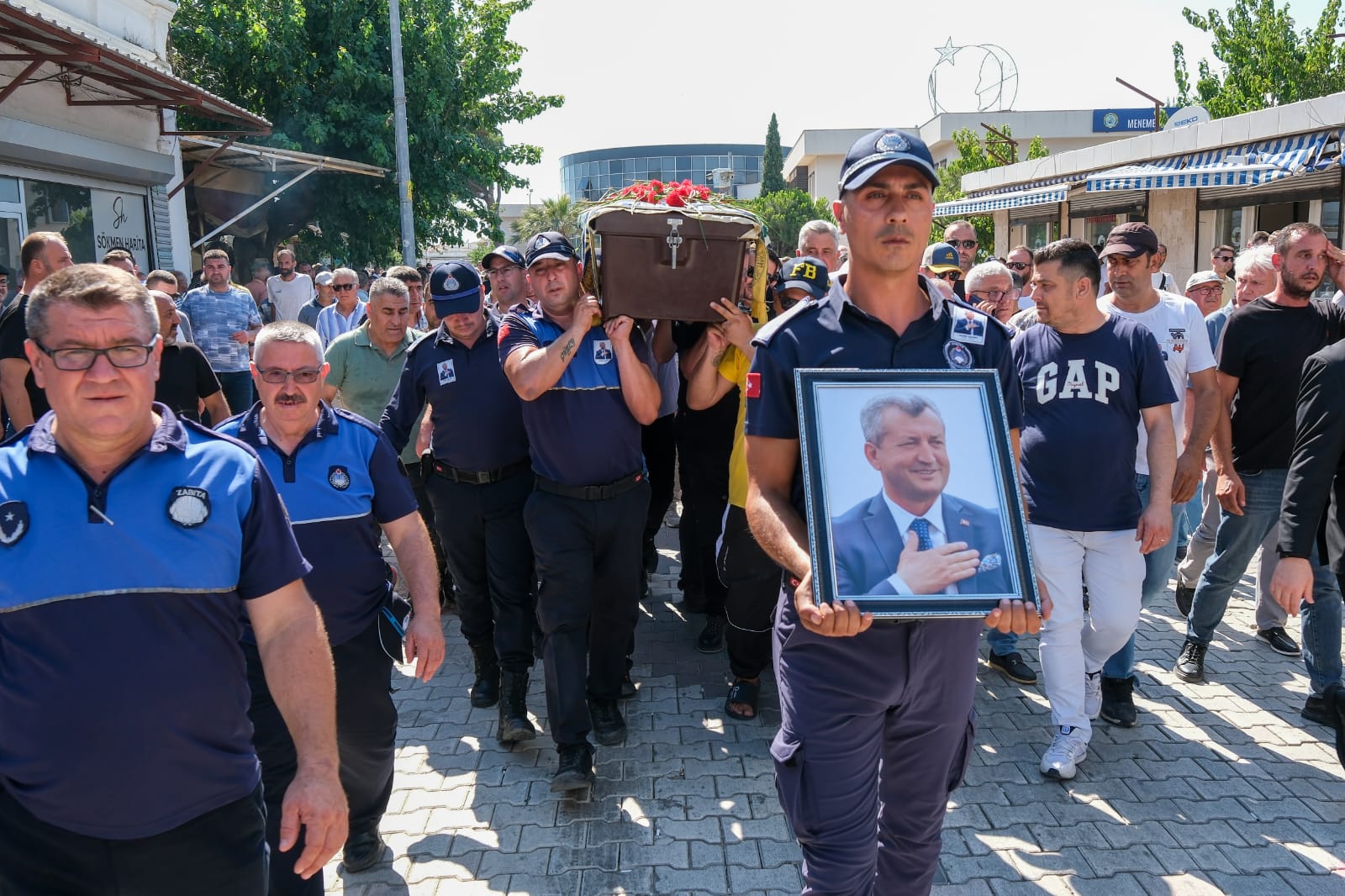 Menemen'de 1999-2019 yılları arasında belediye başkanlığı görevini yürüten ve dün Foça’da geçirdiği kalp krizi sonucu yaşamını yitiren Tahir Şahin'in cenazesi törenle son yolculuğuna uğurlandı.
