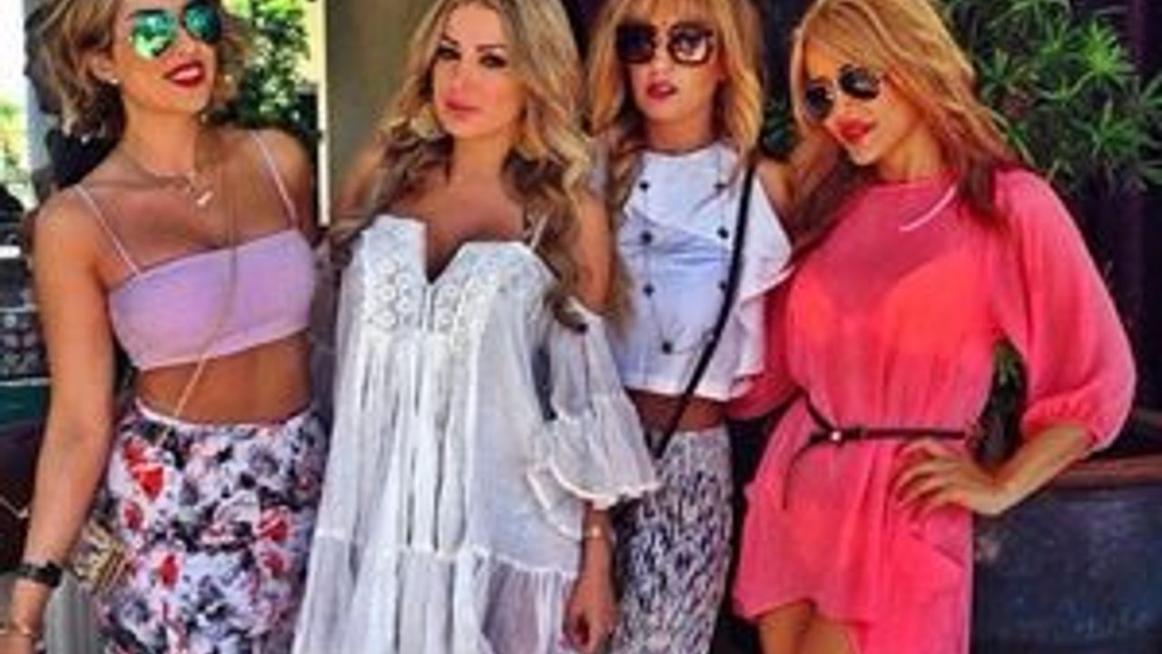 Fotoğraflarda, estetik ameliyatlı genç kadınlar ellerinde içki kadehleriyle poz veriyor.