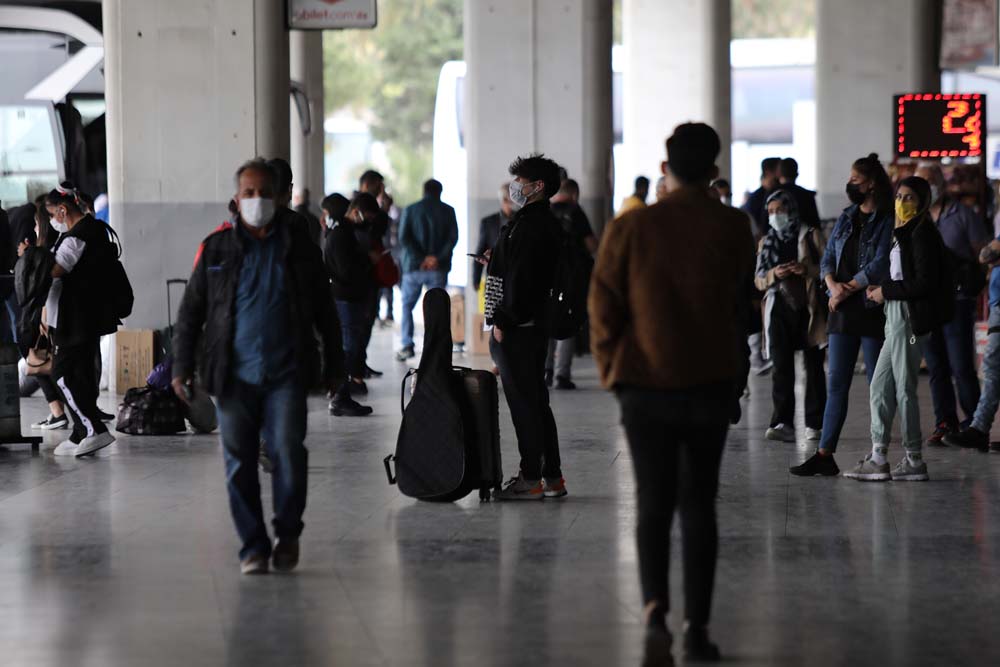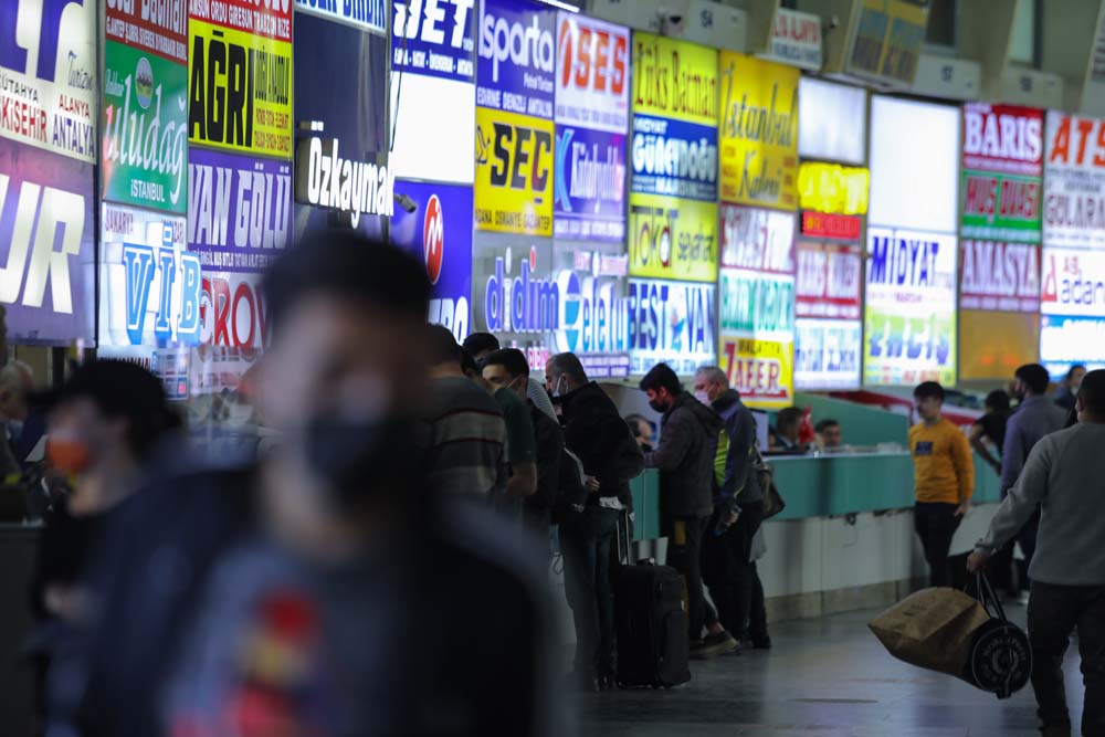 İzmir şehirlerarası otobüs terminalinde, Kovid-19 tedbirleri kapsamında tam kapanmanın başlayacağı 29 Nisan öncesinde yoğunluk yaşanıyor.