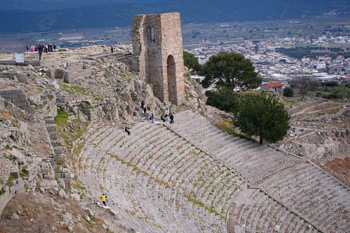 İzmir'in kuzeyinde konumlanan Bergama antik kenti, tarihi ve arkeolojik zenginlikleriyle ziyaretçilerin ilgisini çekiyor. UNESCO Dünya Mirası Listesi'nde yer alan ve antik dönemde Pergamon olarak bilinen Bergama, çevresindeki verimli tarım arazileri ve su kaynaklarına hakim bir noktada yer alıyor. Kentin en önemli bölümlerinden biri olan Bergama Akropolü, başta Helenistik dönem olmak üzere Roma, Bizans, Beylikler ve Osmanlı dönemlerine uzanan çok katmanlı tarihi yapısıyla öne çıkıyor
