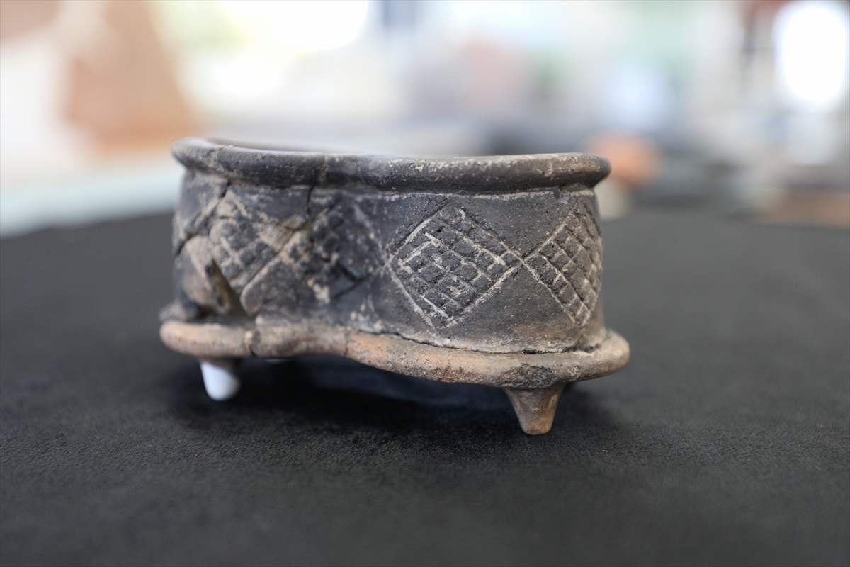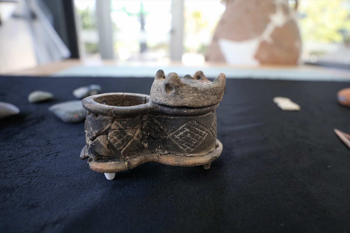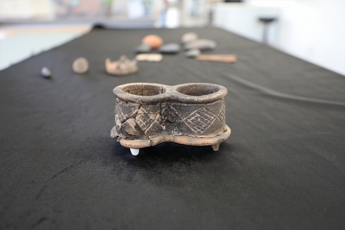 "Kadın her zaman güzelliğine düşkün. Bu anlamda onlar için üretilmiş içine kokuların ya da çeşitli merhemlerin konulduğu özel kaplar bulduk. Yine elbiselerin desenlerini neredeyse kabın üzerine işleyerek özel kaplar yapmışlar. Bu her yerde rastlanan bir şey değil, çoğunlukla mezarlarına kadar götürüyorlar. Bizim burada çift bölümlü özel bir kap var. Kemikten iğneler var hatta belki saç tokası olarak kullandıkları iğneler. Bunları da küçükbaş hayvan kemiklerinden yapmışlar."