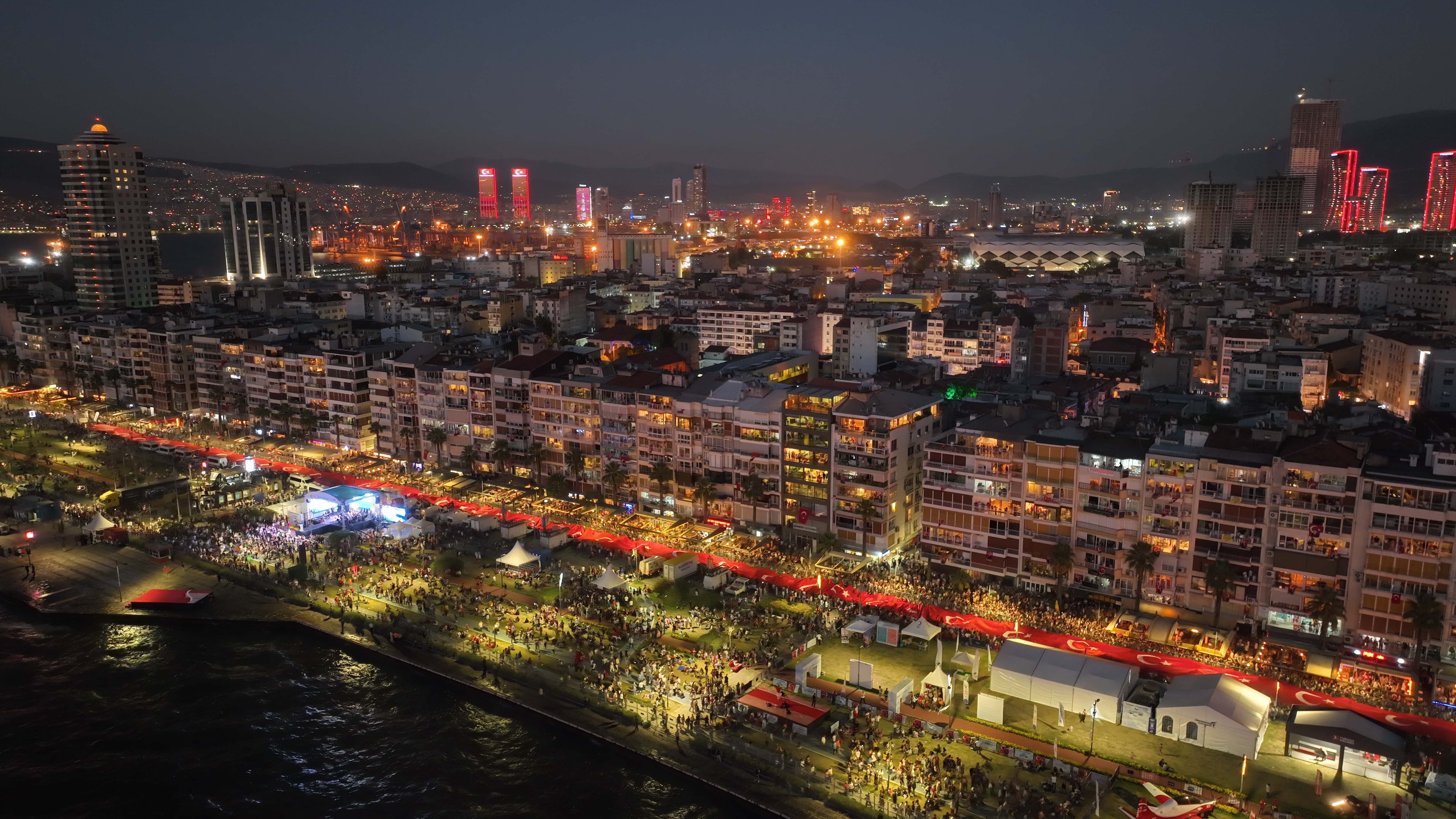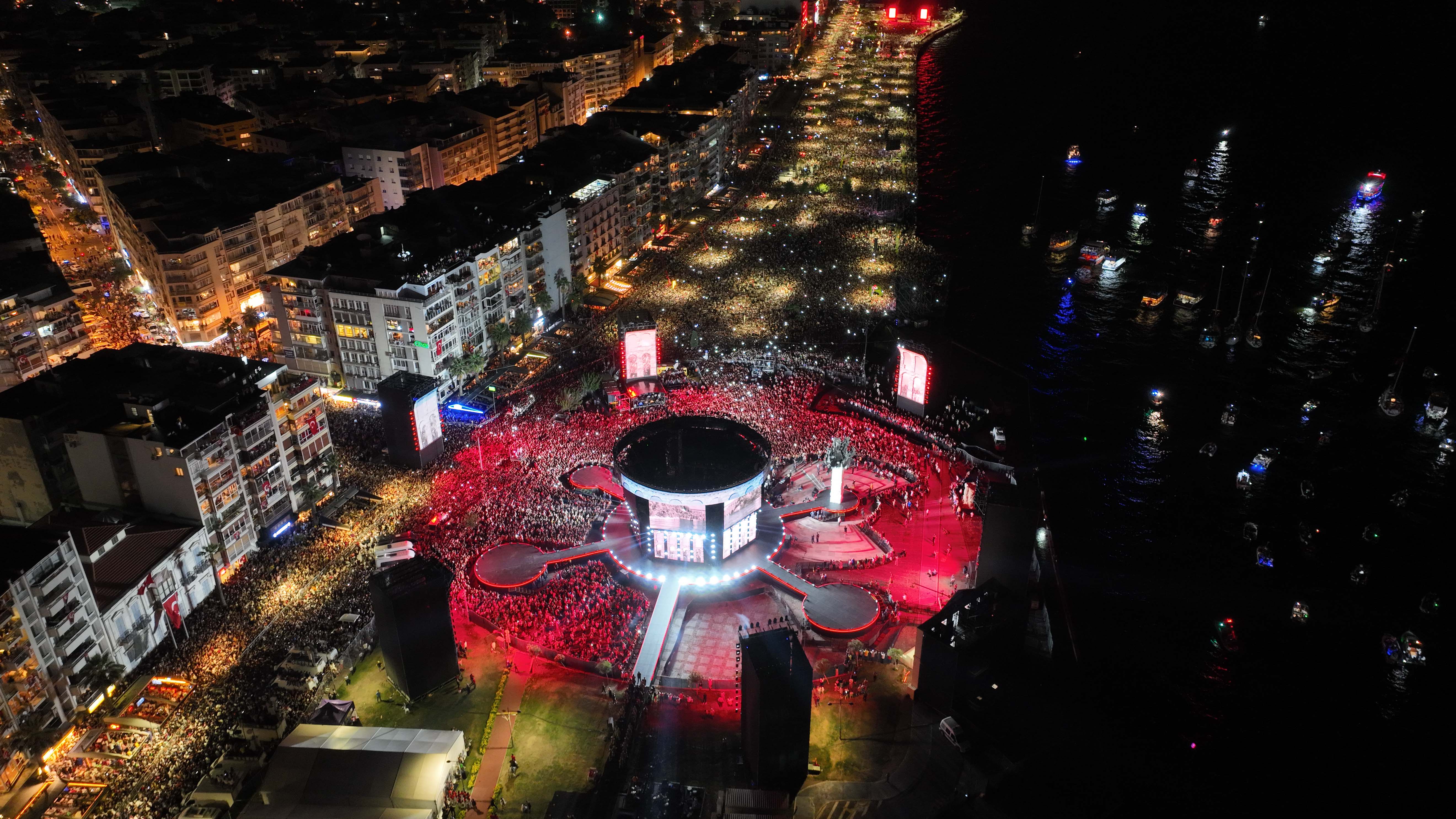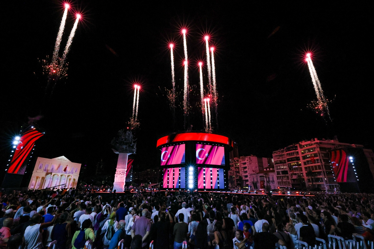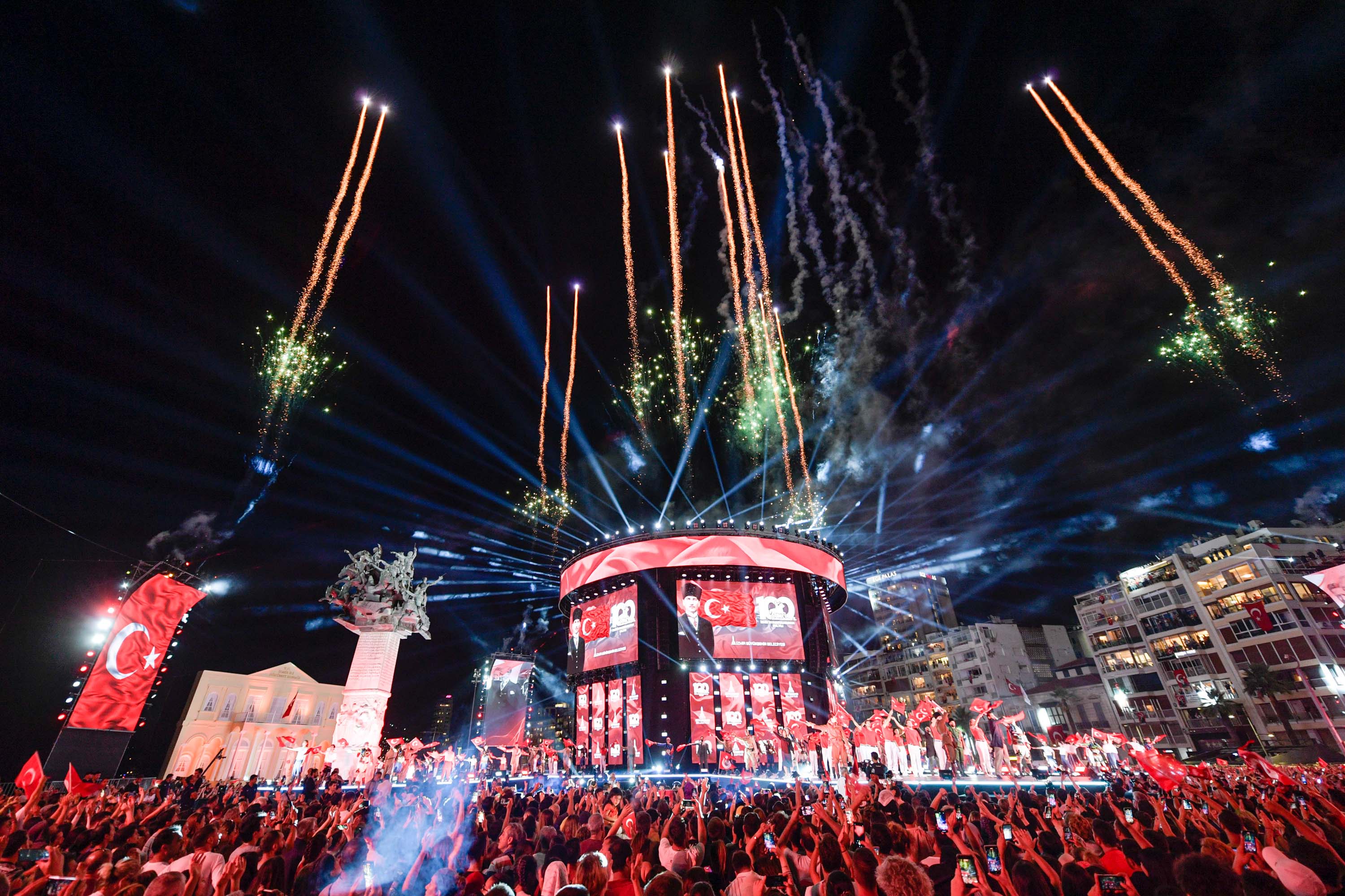 İzmirliler tarihi 100. yıl kutlamaları için Gündoğdu Meydanı’na akın etti.