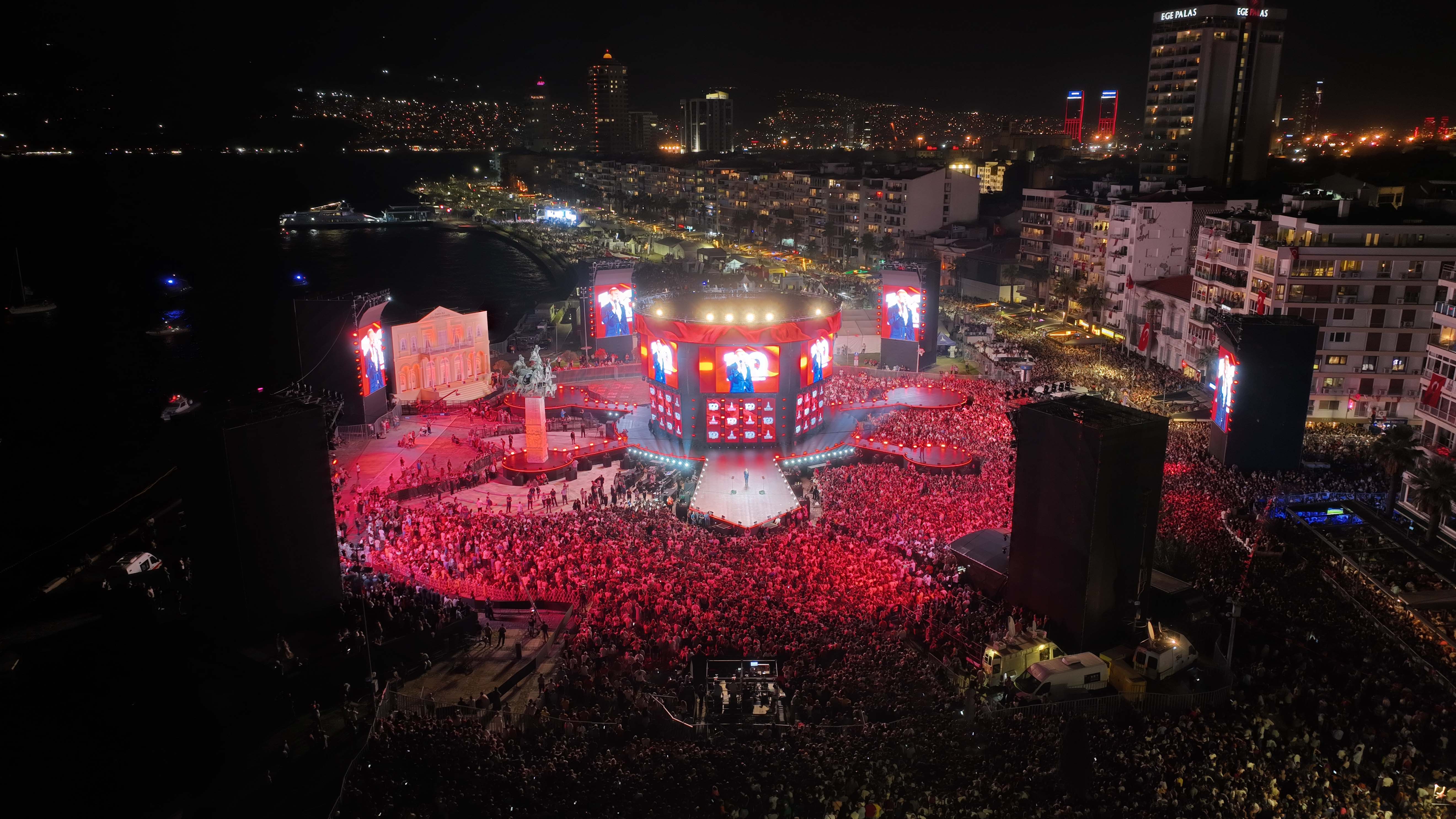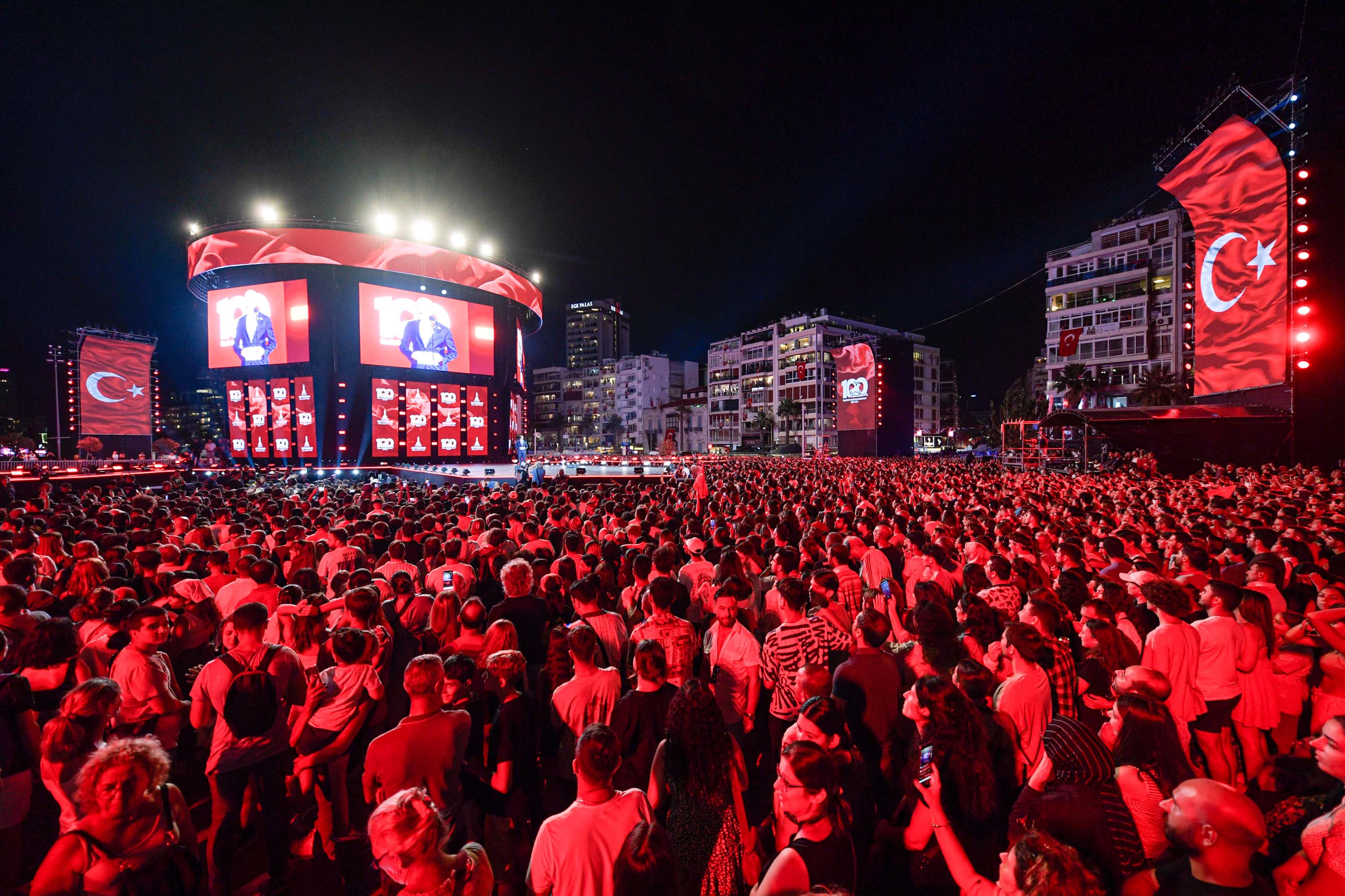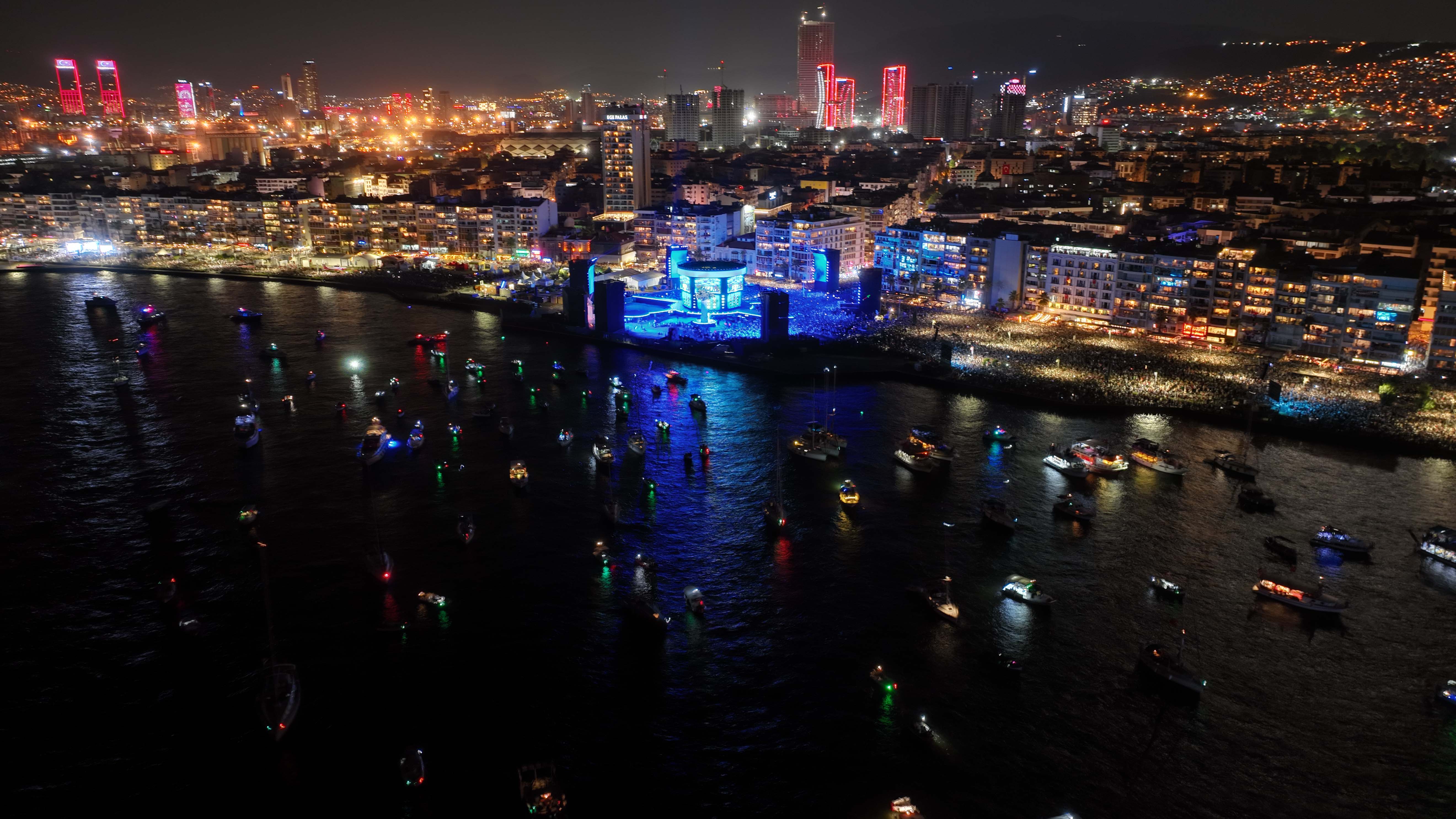 İzmirliler tarihi 100. yıl kutlamaları için Gündoğdu Meydanı’na akın etti.