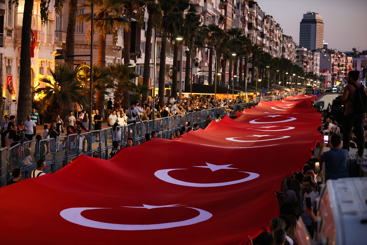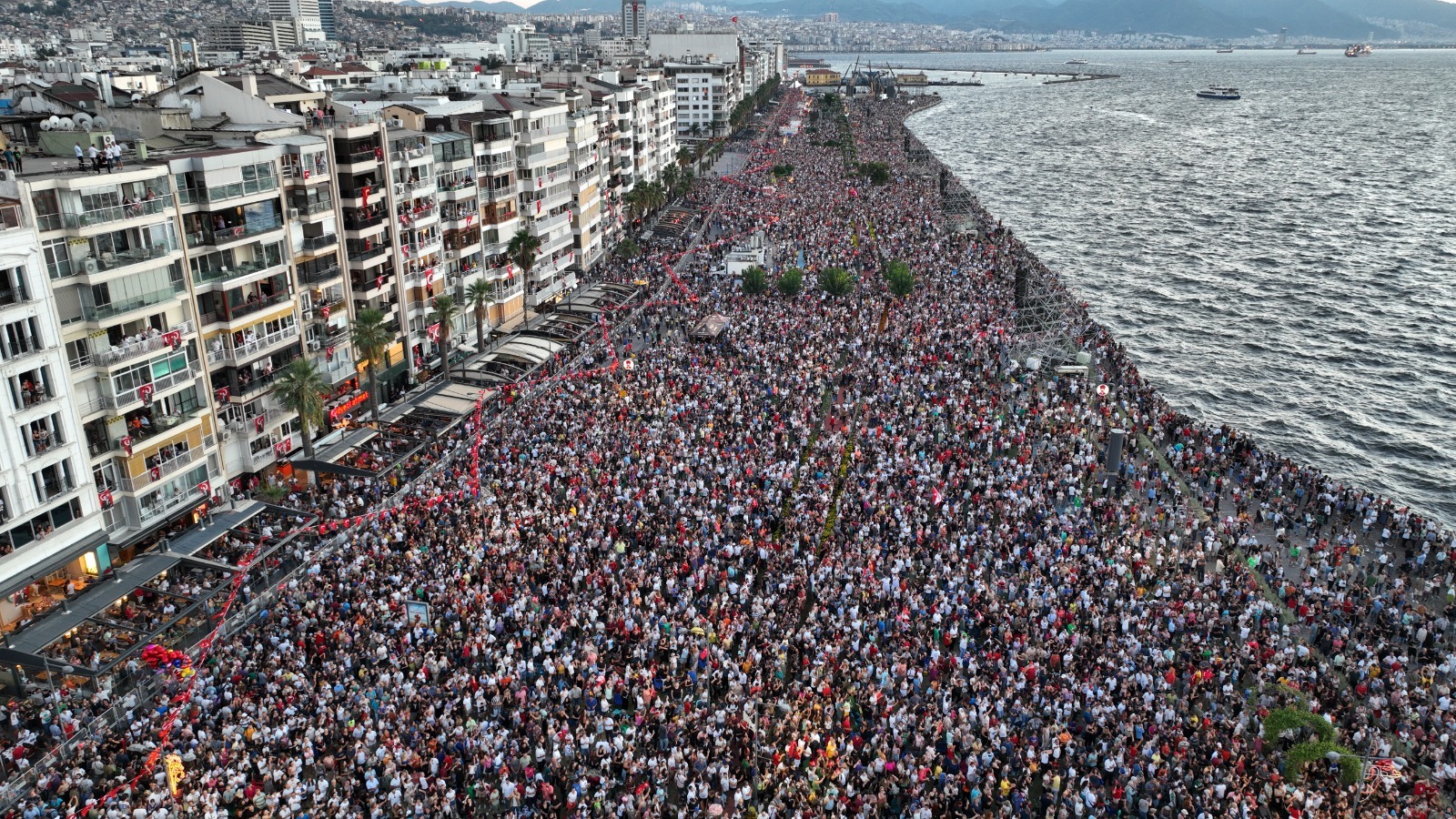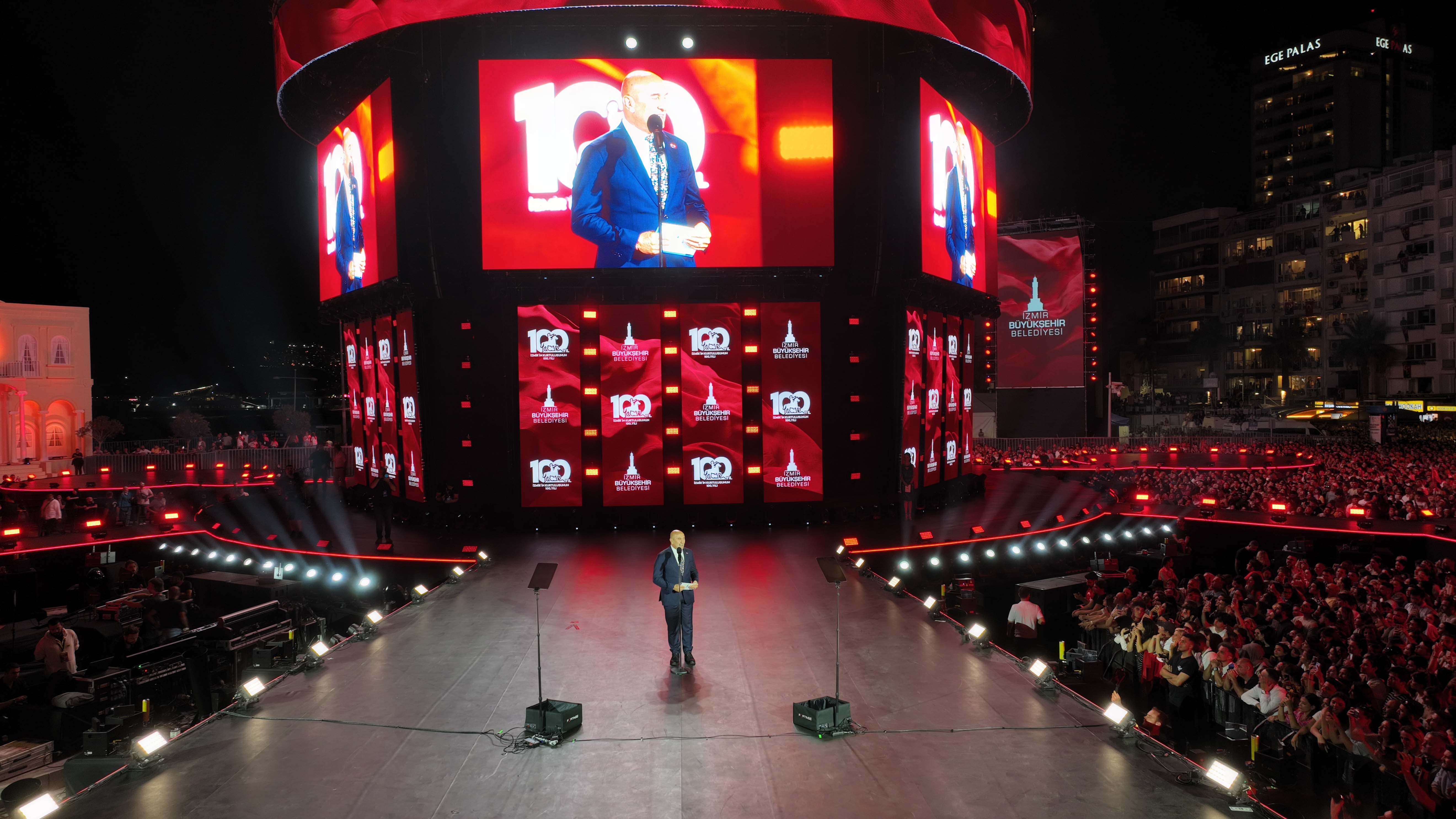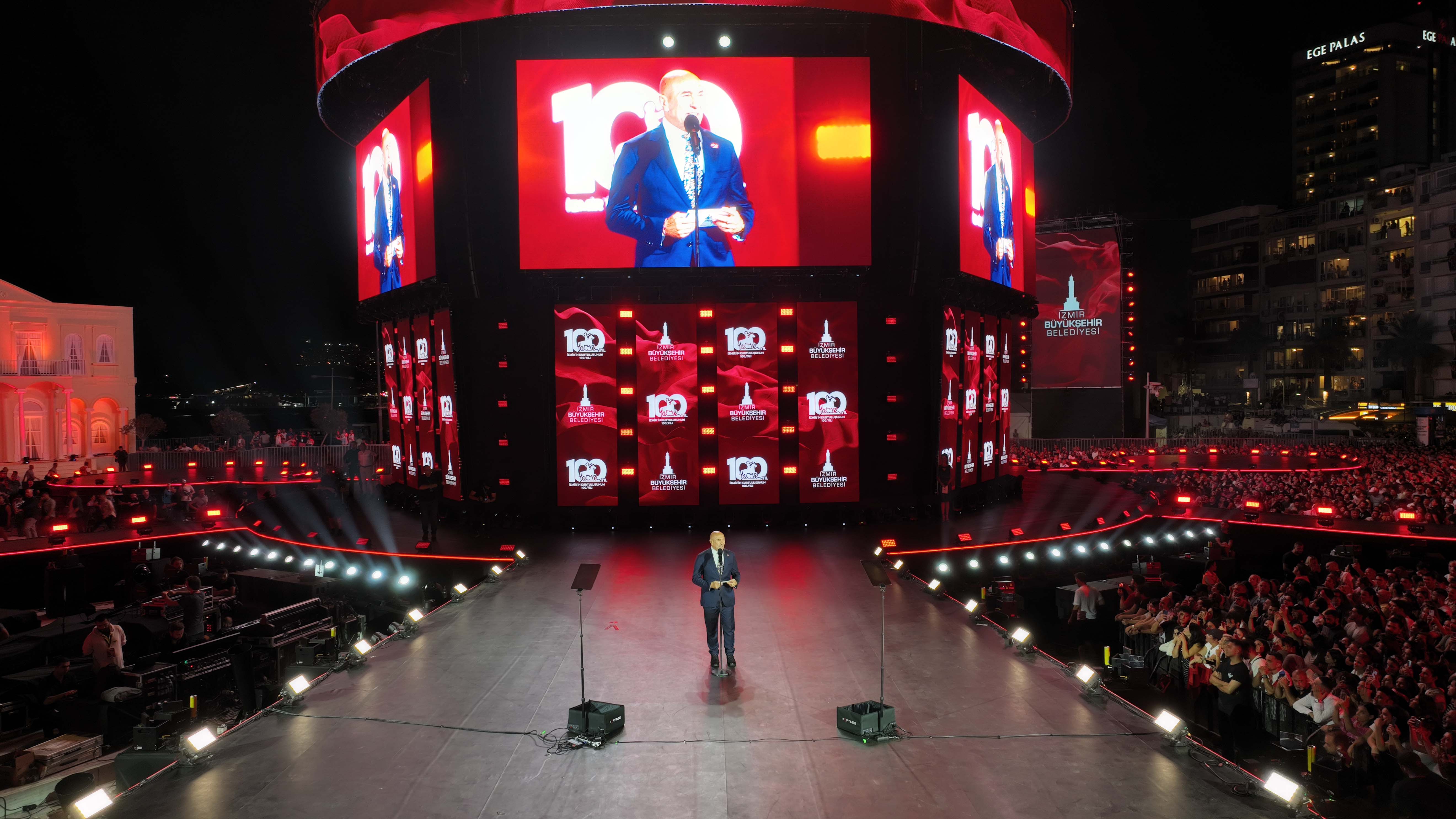 İzmirliler tarihi 100. yıl kutlamaları için Gündoğdu Meydanı’na akın etti.
