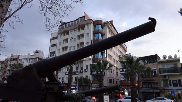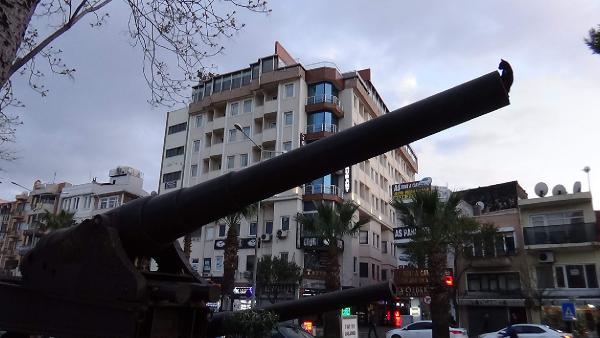 Çanakkale Savaşları'nda kullanılan ve kentin en işlek caddesinde sergilenen tarihi topun namlusu, bir kedi ile yavrularına yuva oldu. Kedinin namlu üzerinde yürüyüşünü ve içeriden namlunun ağzına kadar gelerek etrafı seyreden yavruları izleyenler, hayvanların düşecekleri düşüncesiyle endişe yaşıyor.