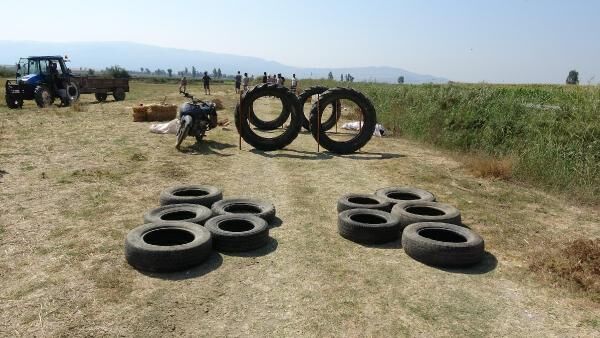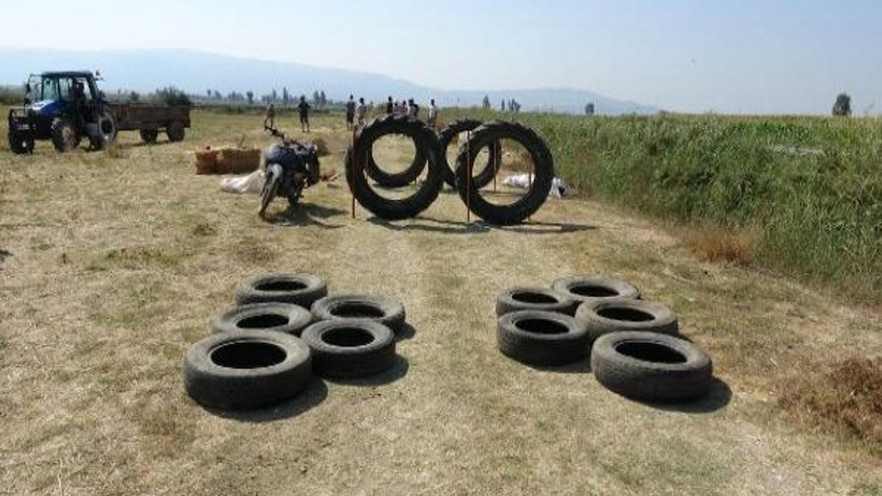 Gençler, kendi imkanlarıyla traktör ve otomobil lastikleri ve küçük el arabalarıyla tarlada kendi parkurlarını hazırladı. Mahalleden 10 yarışmacı parkurda ter döktü. Lastiklerin üstünden ve içinden geçen yarışmacılar, tel örgünün altından süründükten sonra el arabalarına koydukları sepetleri taşıdı. Sepetlere ise plastik su şişelerini attı. Finalde ise 3 şişeyi sepete ilk olarak atan yarışmacı, galip sayıldı. Samanların üstünde oturan diğer yarışmacılar ise heyecandan yerinde duramadı.