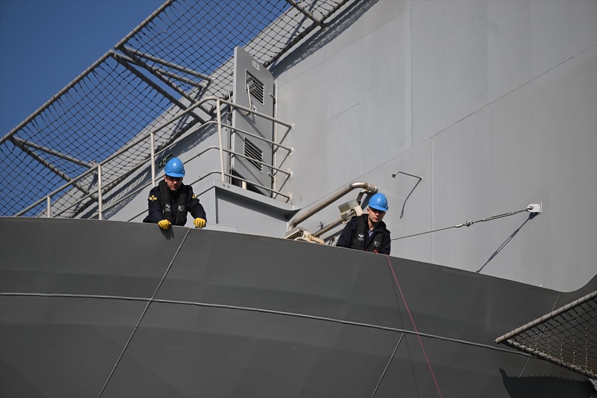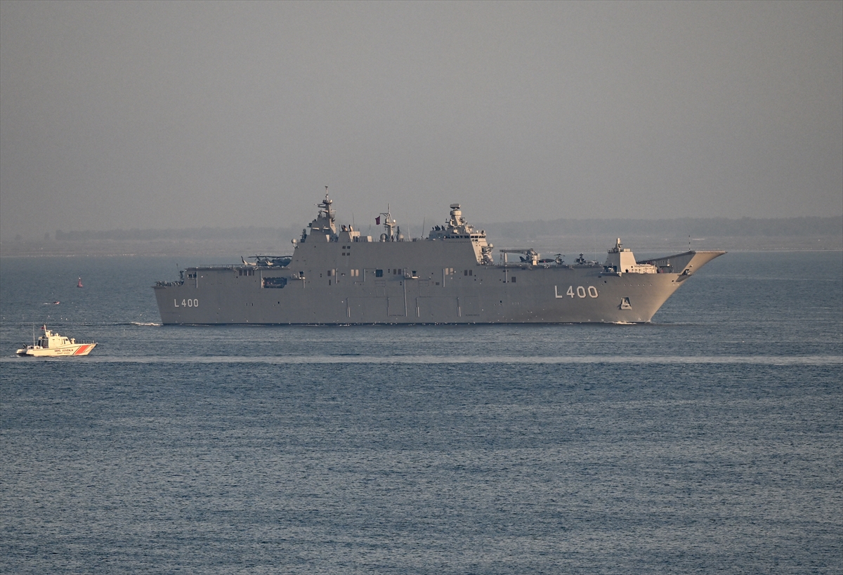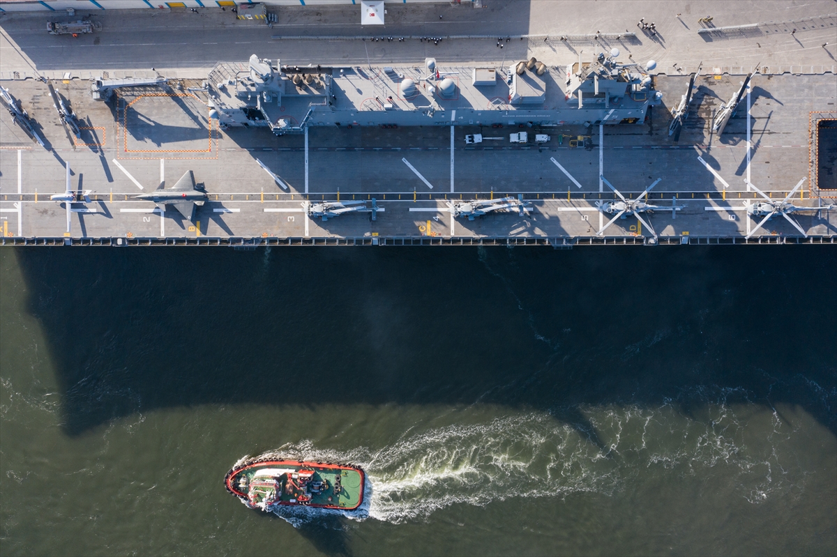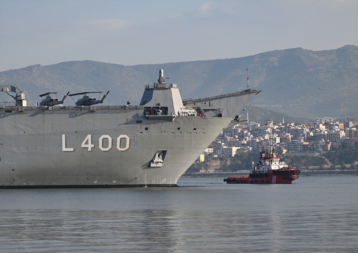 Sabah saatlerinde İzmir Körfezi'ne bir askeri gemi eşliğinde giriş yapan TCG Anadolu, ardından römorkörler eşliğinde Alsancak Limanı'na demirledi.