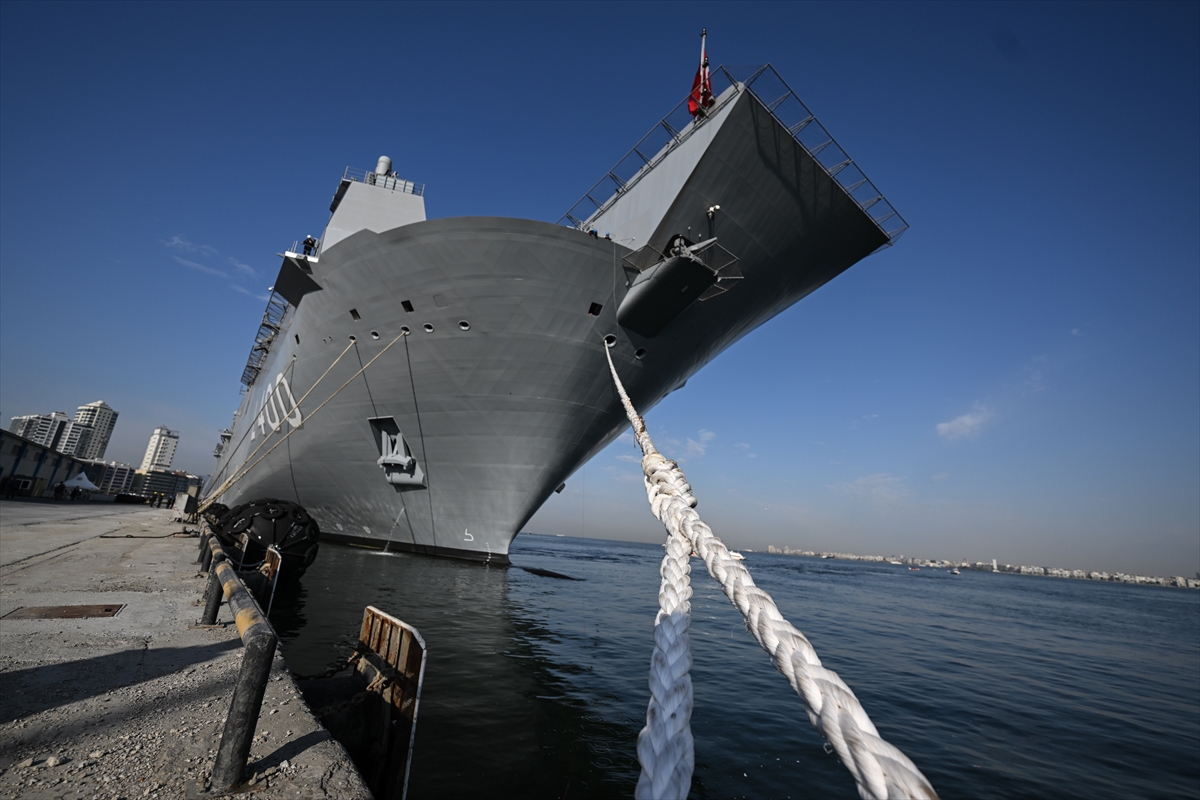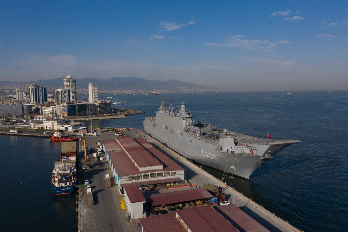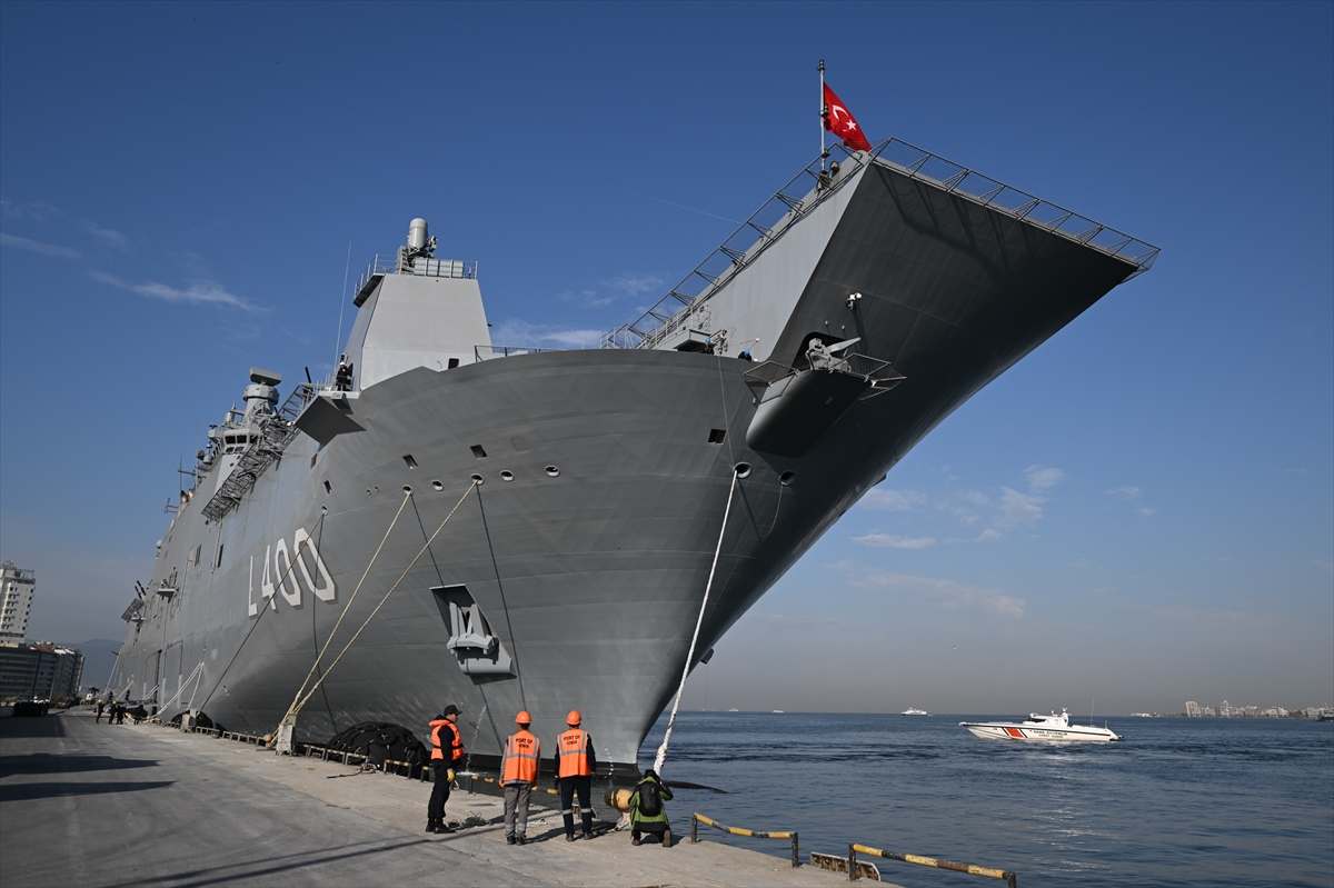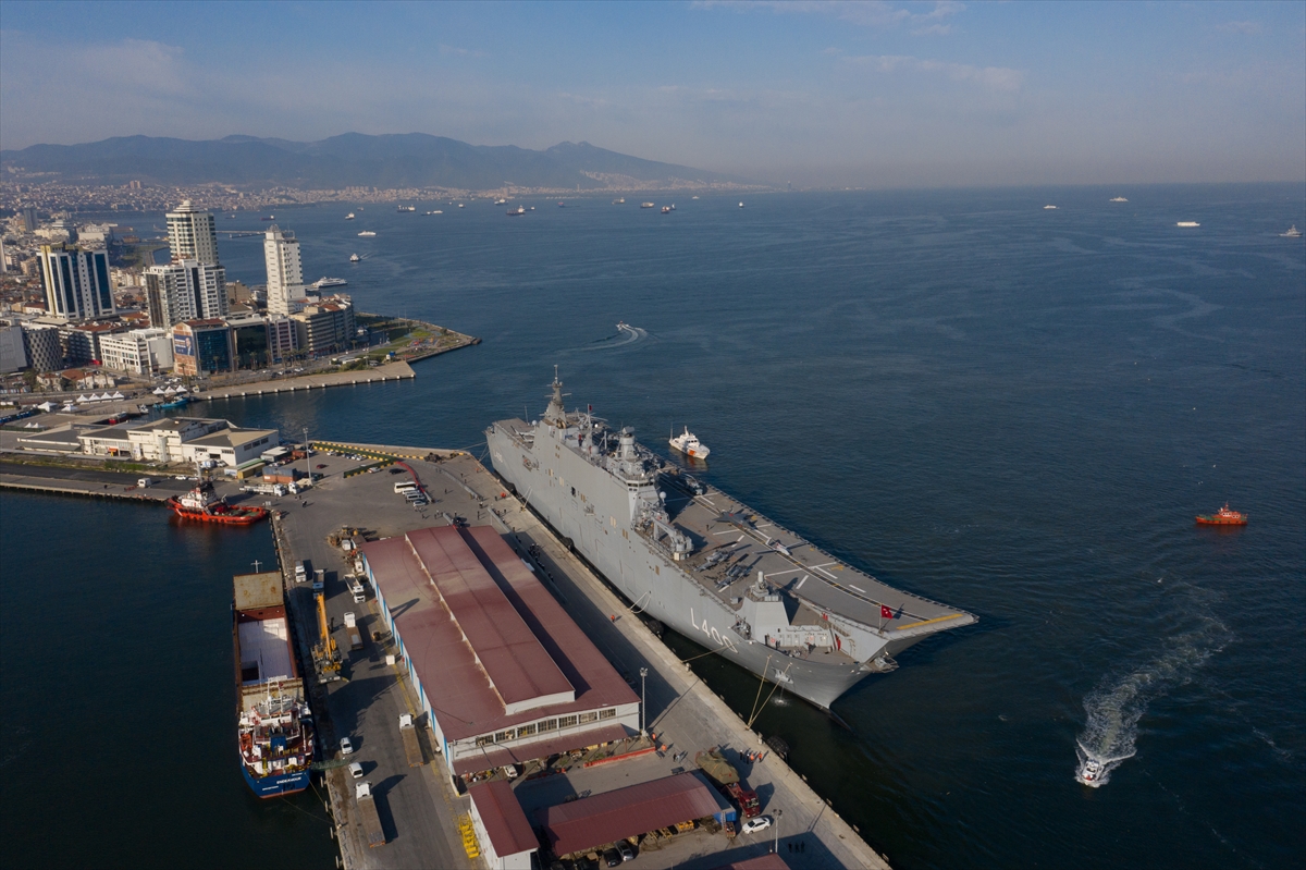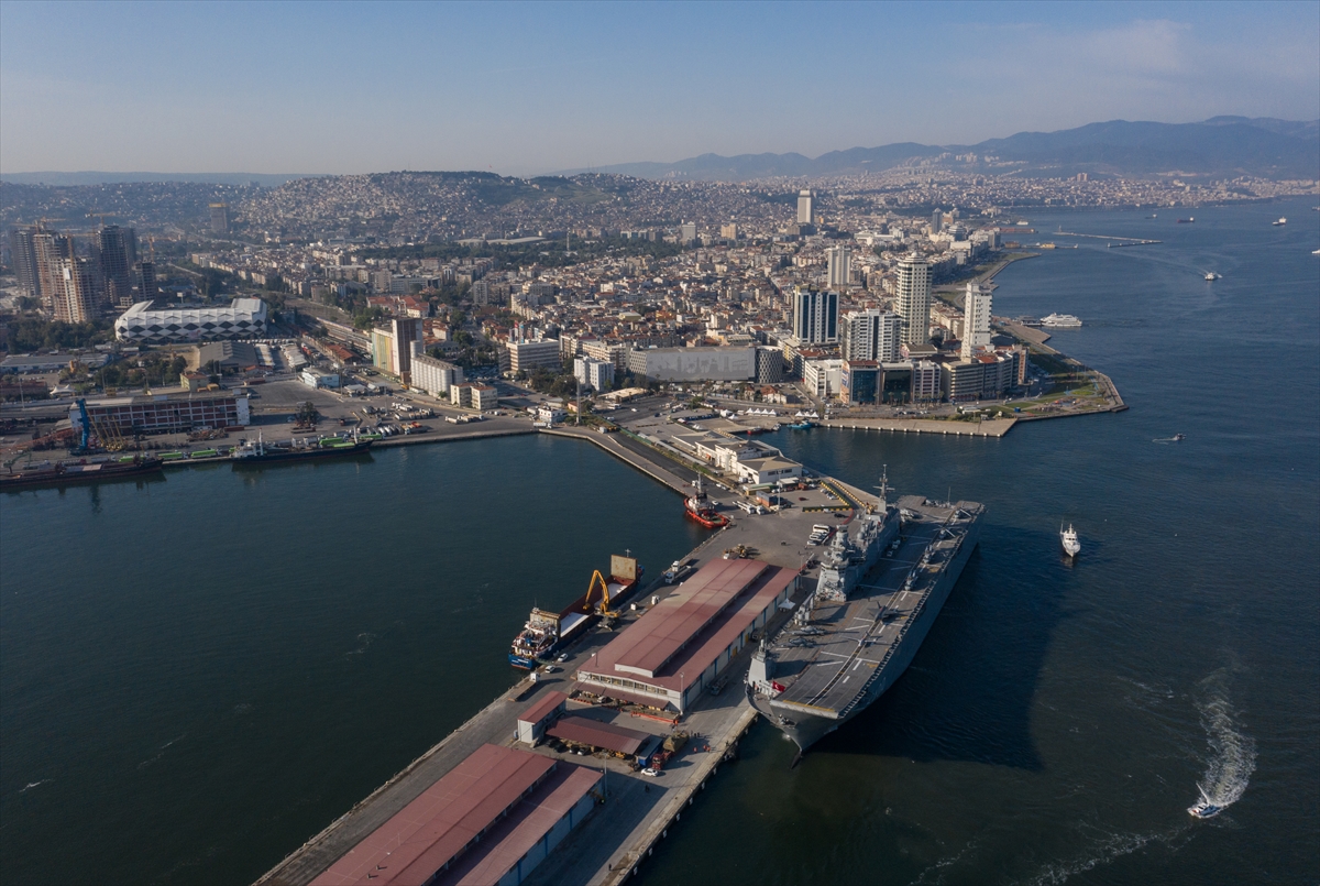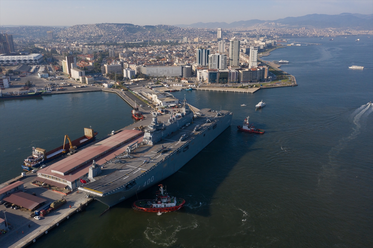 Türk Silahlı Kuvvetlerinin en büyük savaş gemisi, yerli ve milli üretim TCG Anadolu, İzmir Alsancak Limanı'na geldi.