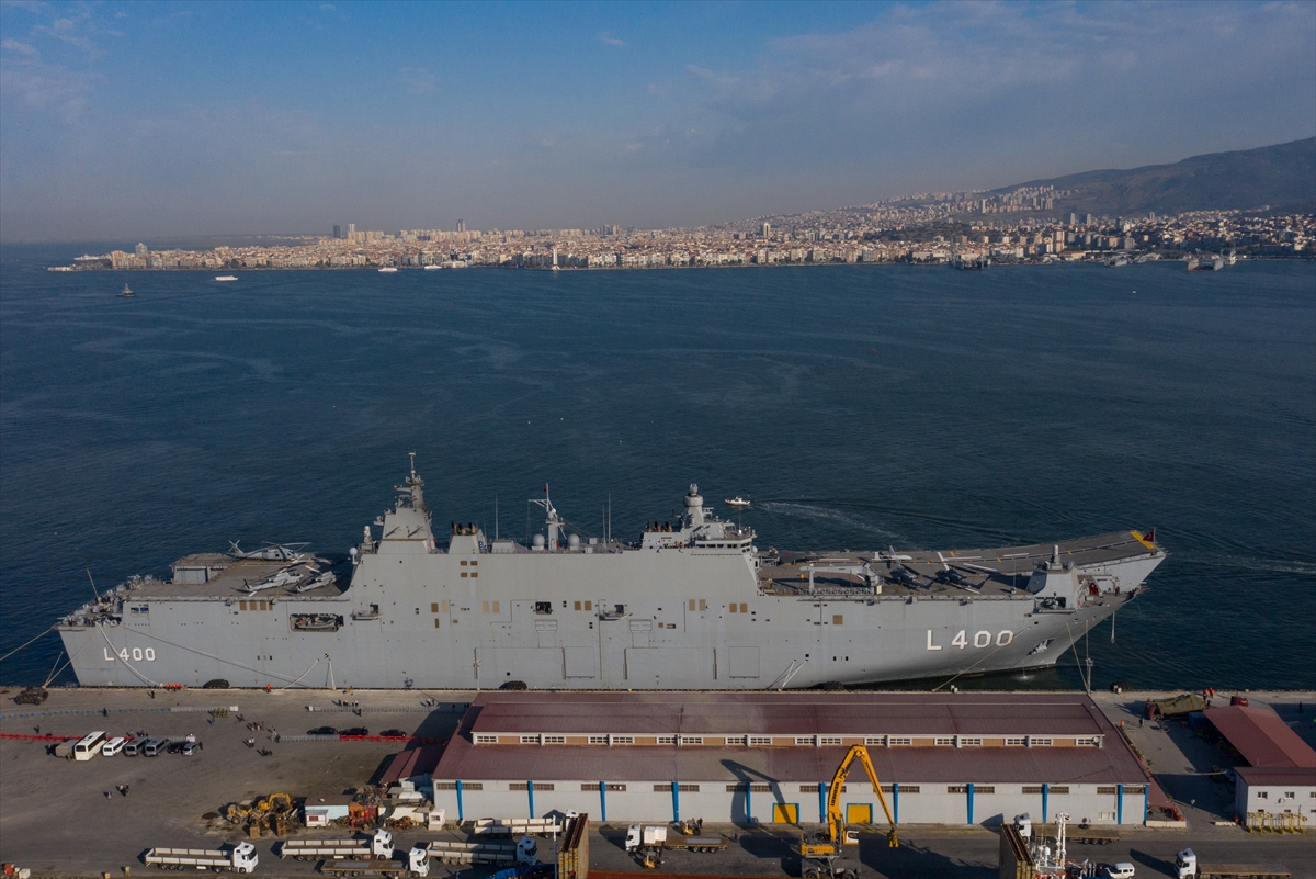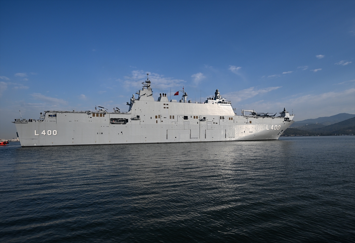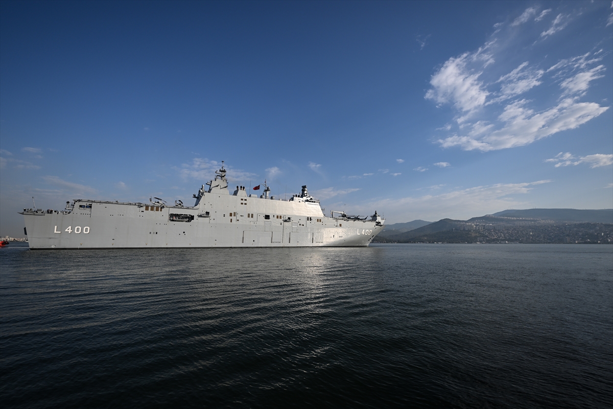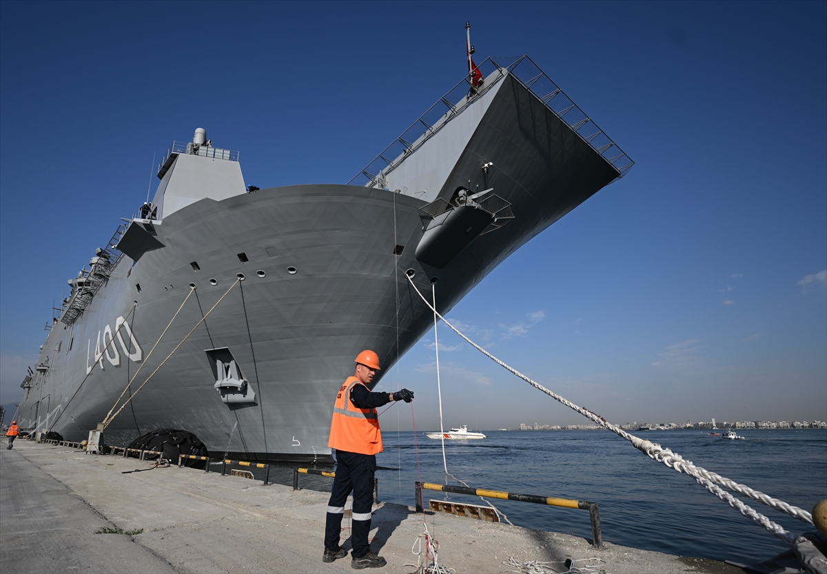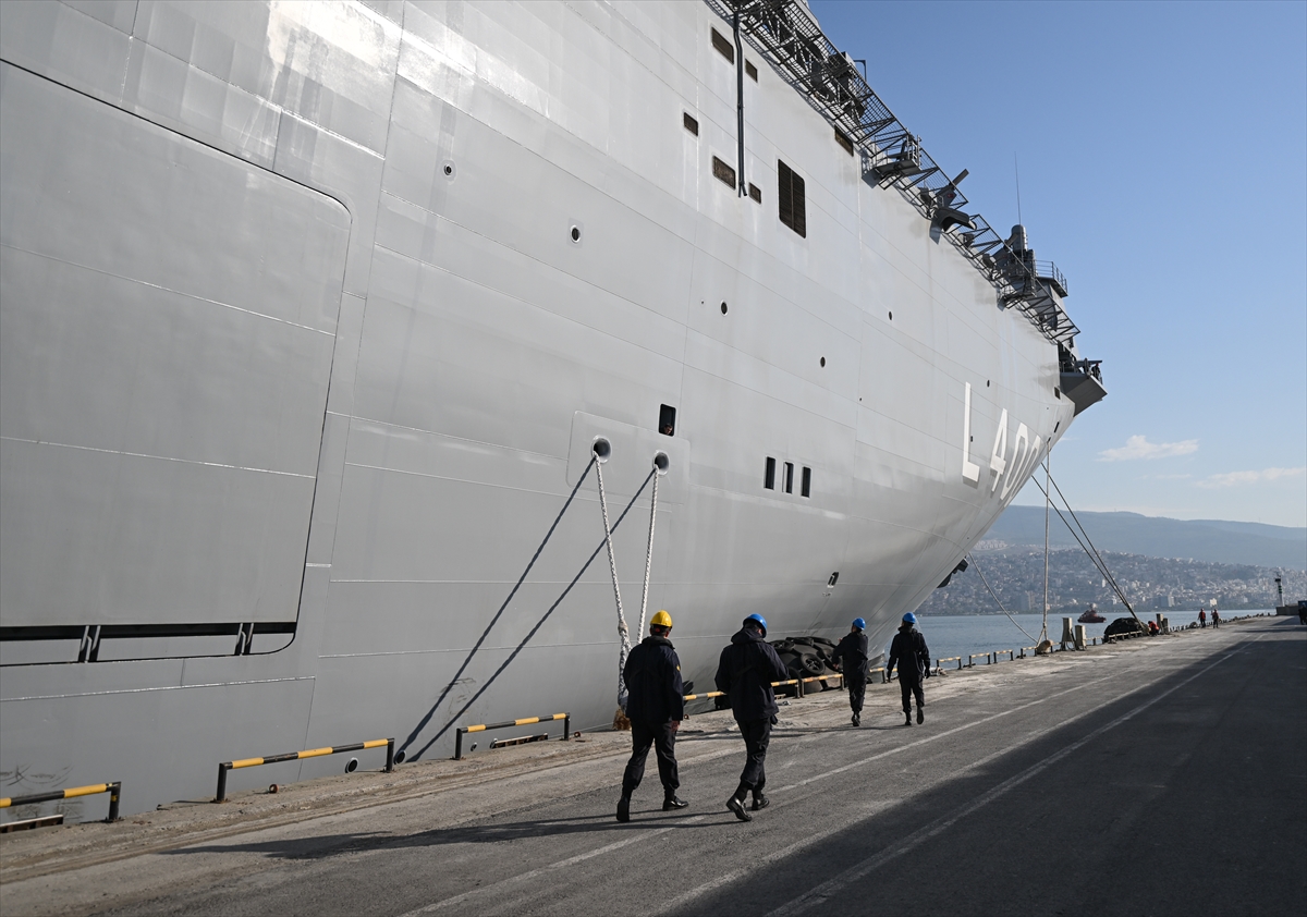 Türk Silahlı Kuvvetlerinin en büyük savaş gemisi, yerli ve milli üretim TCG Anadolu, İzmir Alsancak Limanı'na geldi.