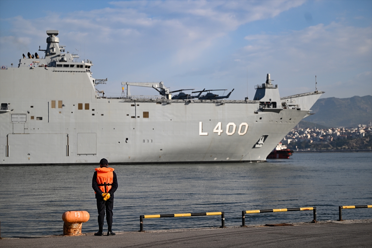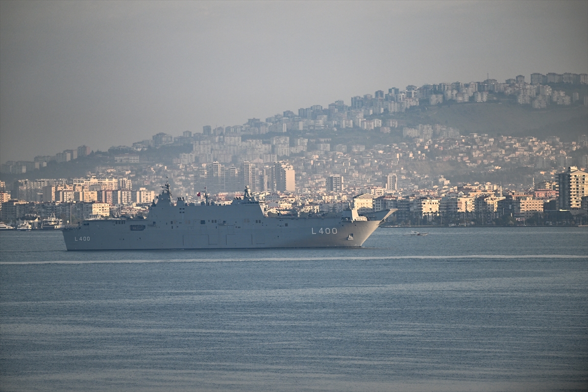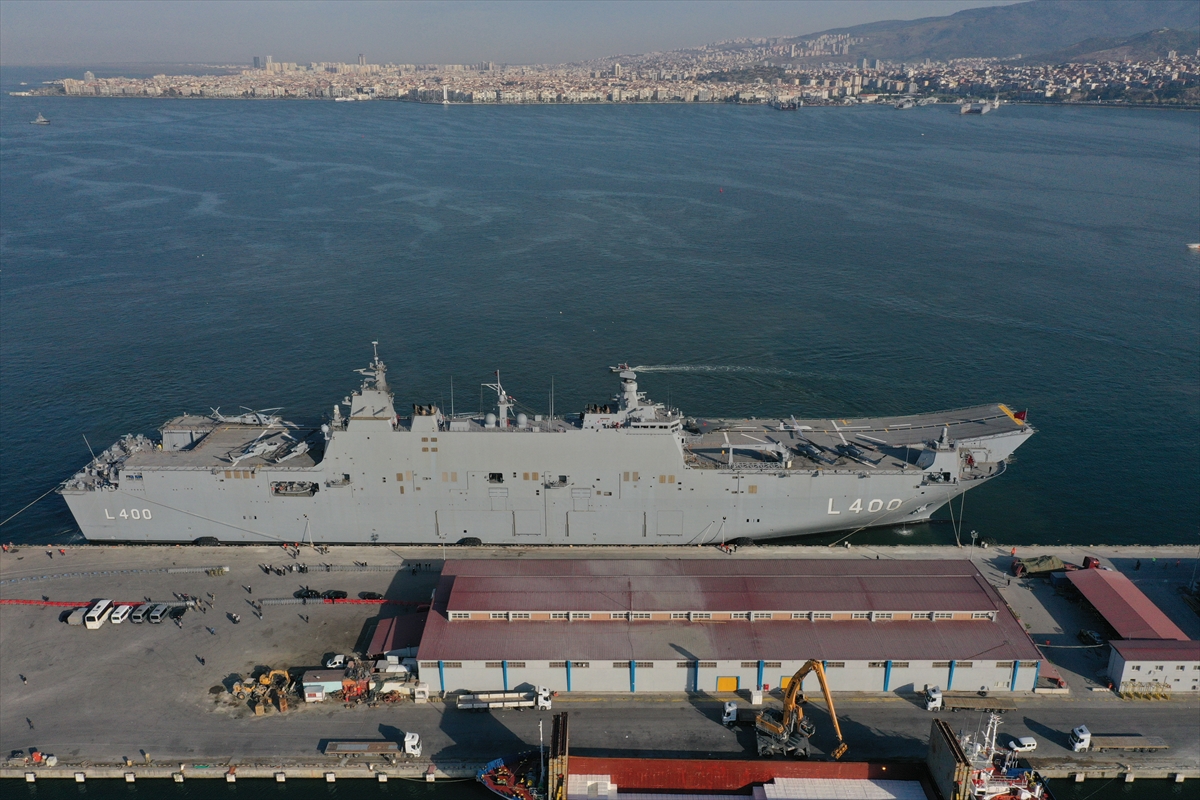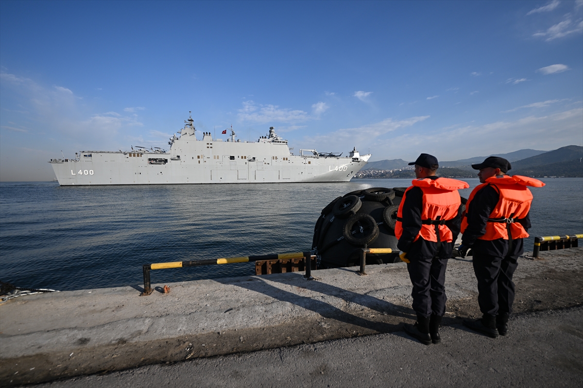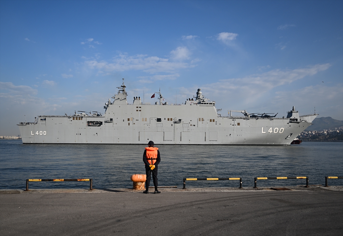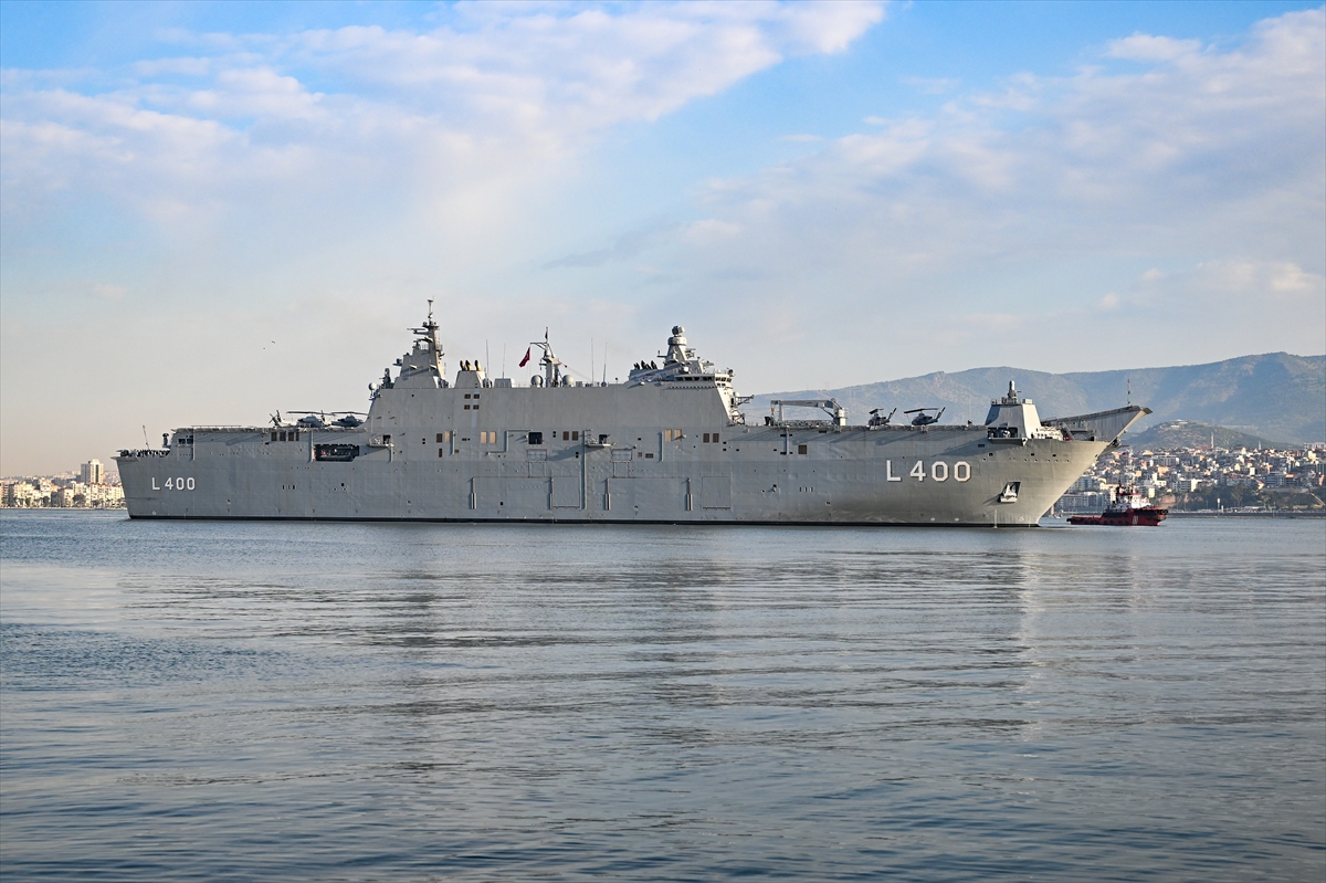 Türk Silahlı Kuvvetlerinin en büyük savaş gemisi, yerli ve milli üretim TCG Anadolu, İzmir Alsancak Limanı'na geldi.