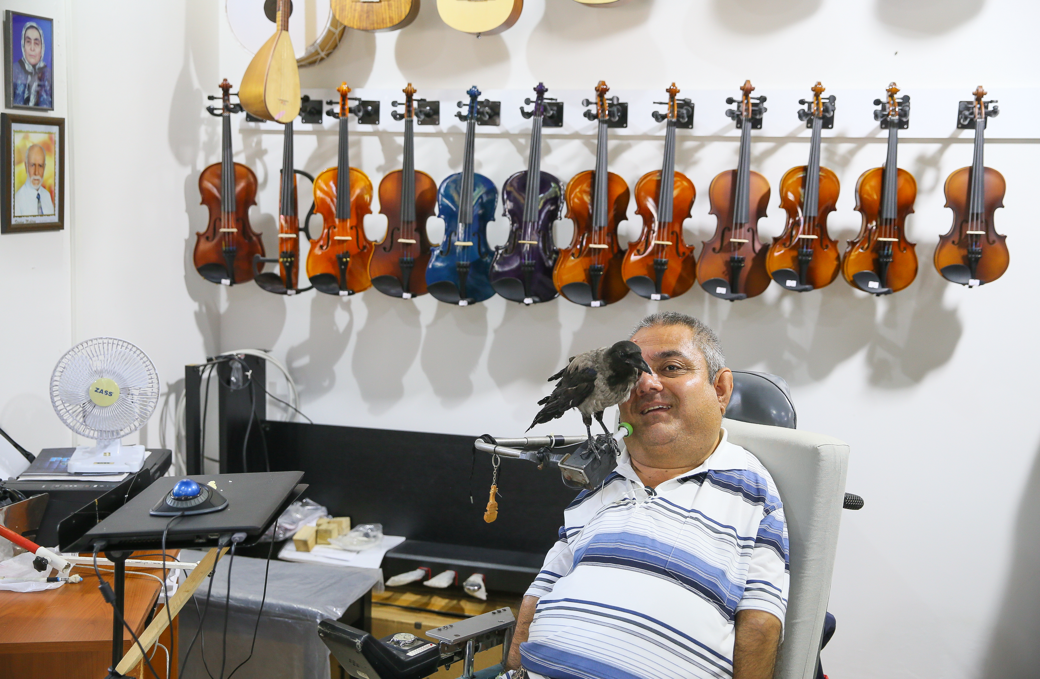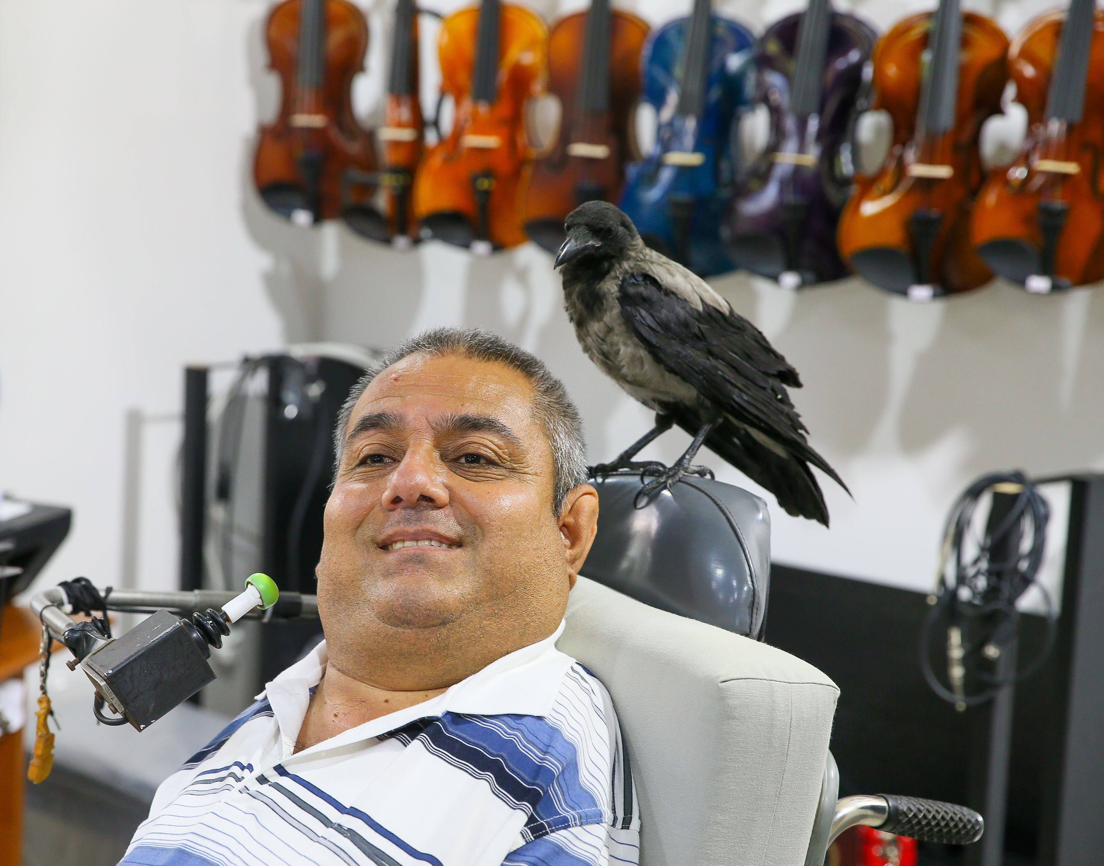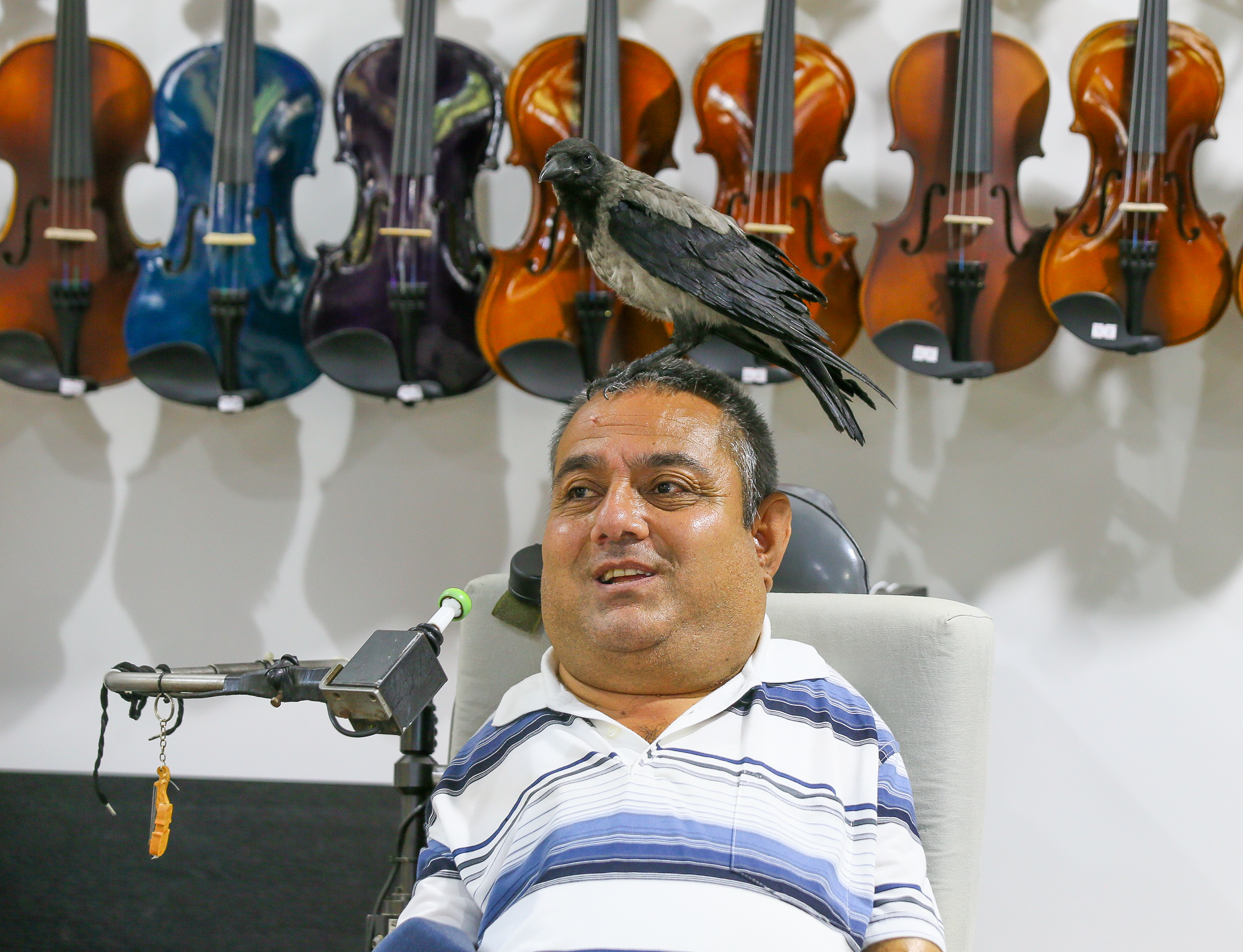 Duran, Bostanlı semtinde 21 yıldır işlettiği müzik merkezi yakınlarında, 3 ay önce yolda sürünen yaralı karga yavrusu gördü.