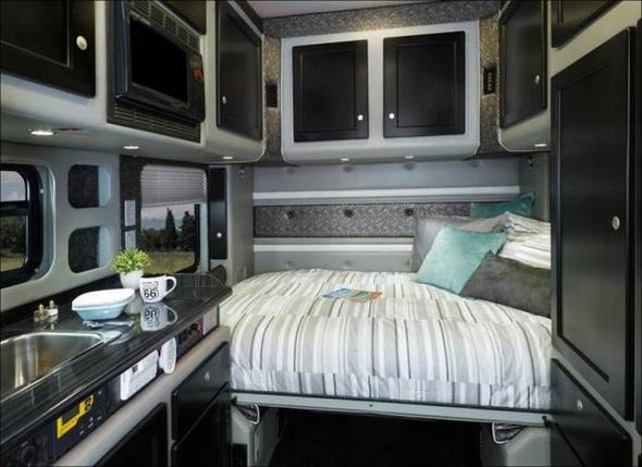 Yük alacağı bölgenin hemen önüne şoför koltuğunun arkasına ufak bir dünya yapılan tırda rahat bir yatak, mutfak ve oturma alanı bulunuyor.