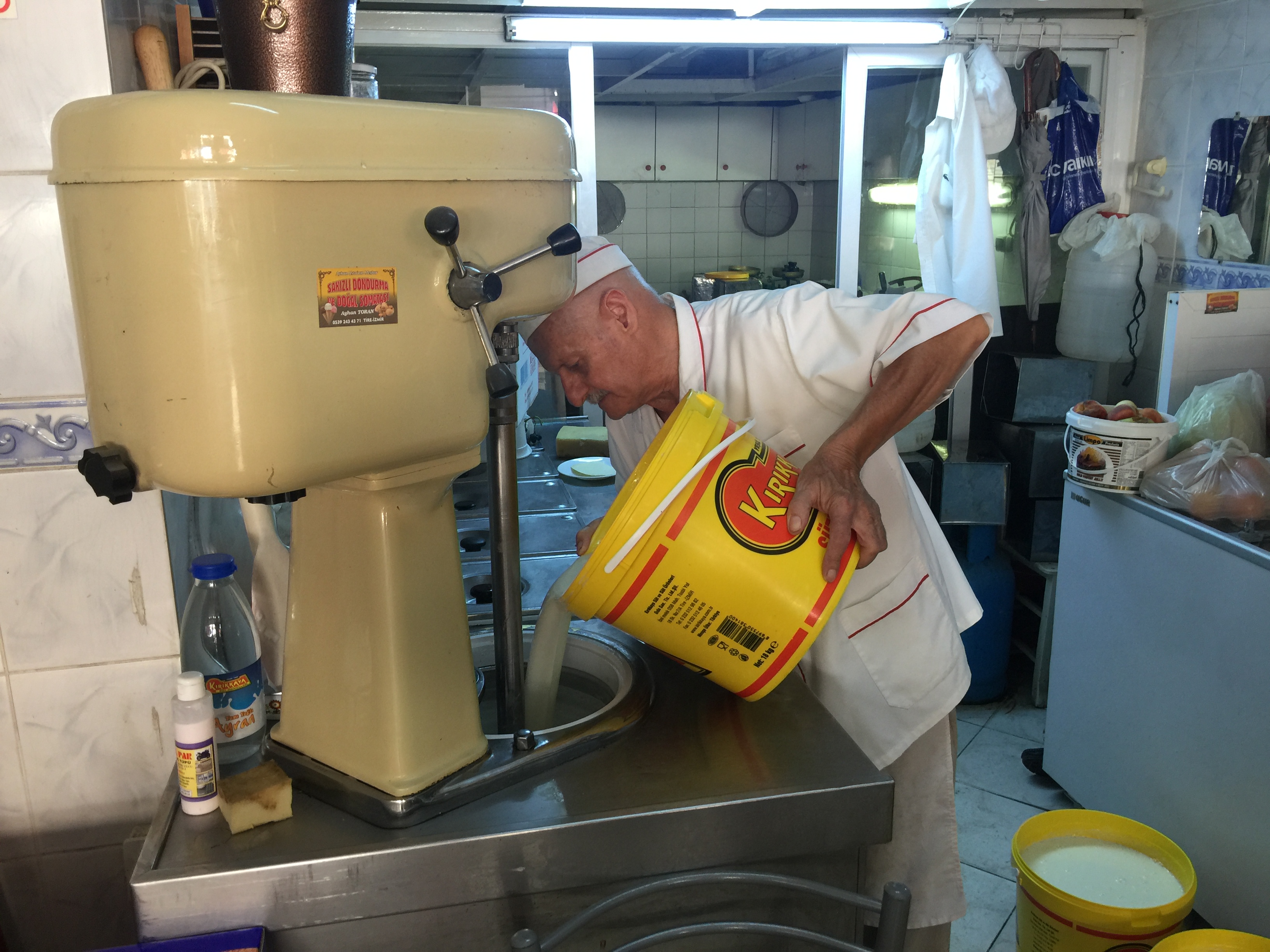 "Salebi un haline getirdikten sonra bunu süt ve sakızla bir araya getiriyorum. İmalathanemde birçok meyveden dondurma yapıyorum. Herkesin seveceği çeşidimiz var. Karadutlu, incirli, cevizli, çilekli, muzlu, portakallı, limonlu ve acı bademli dondurmalar yapıyorum. Bu kullandığım meyveler taze oluyor. İnsanlar tadından da zaten anlıyor."