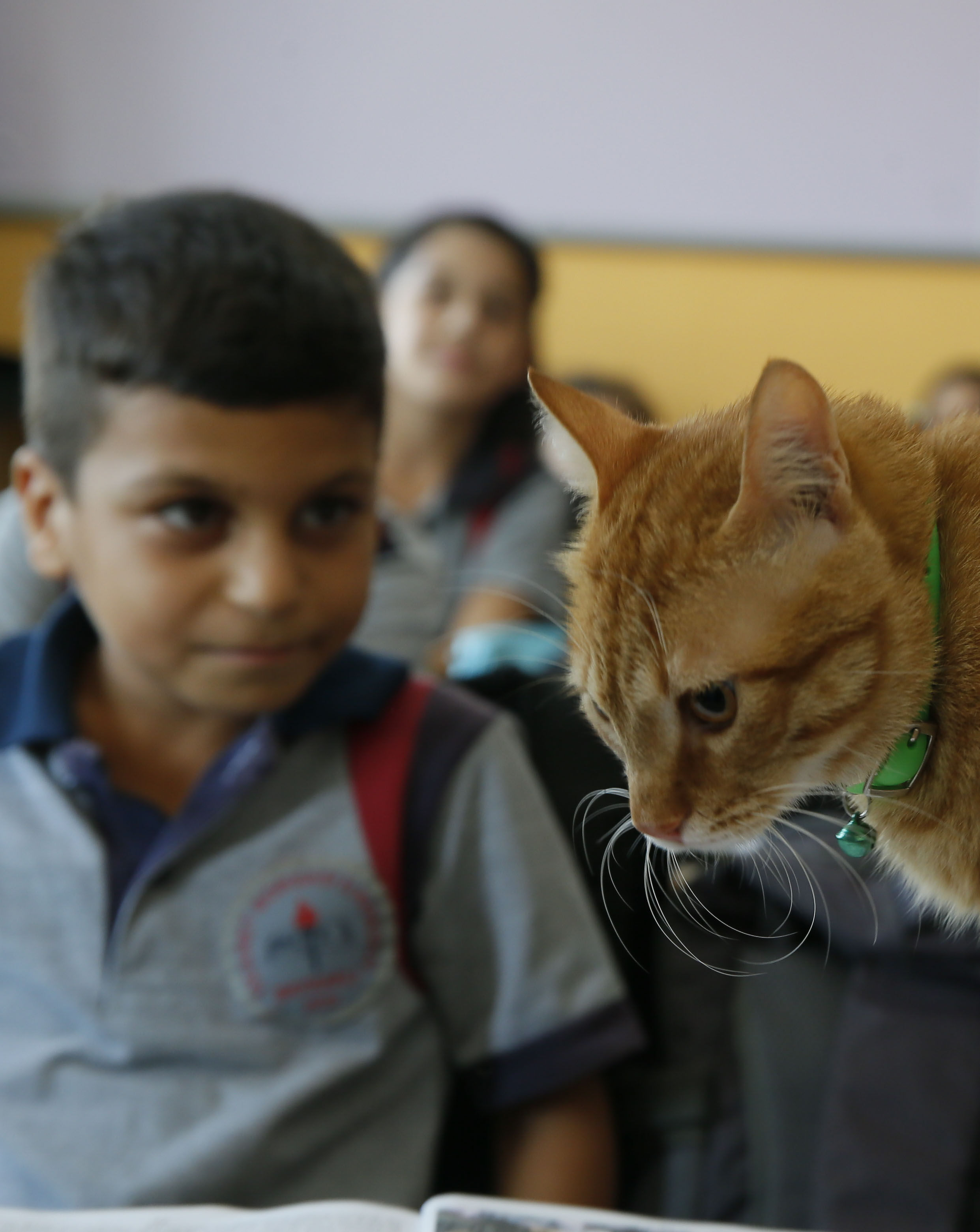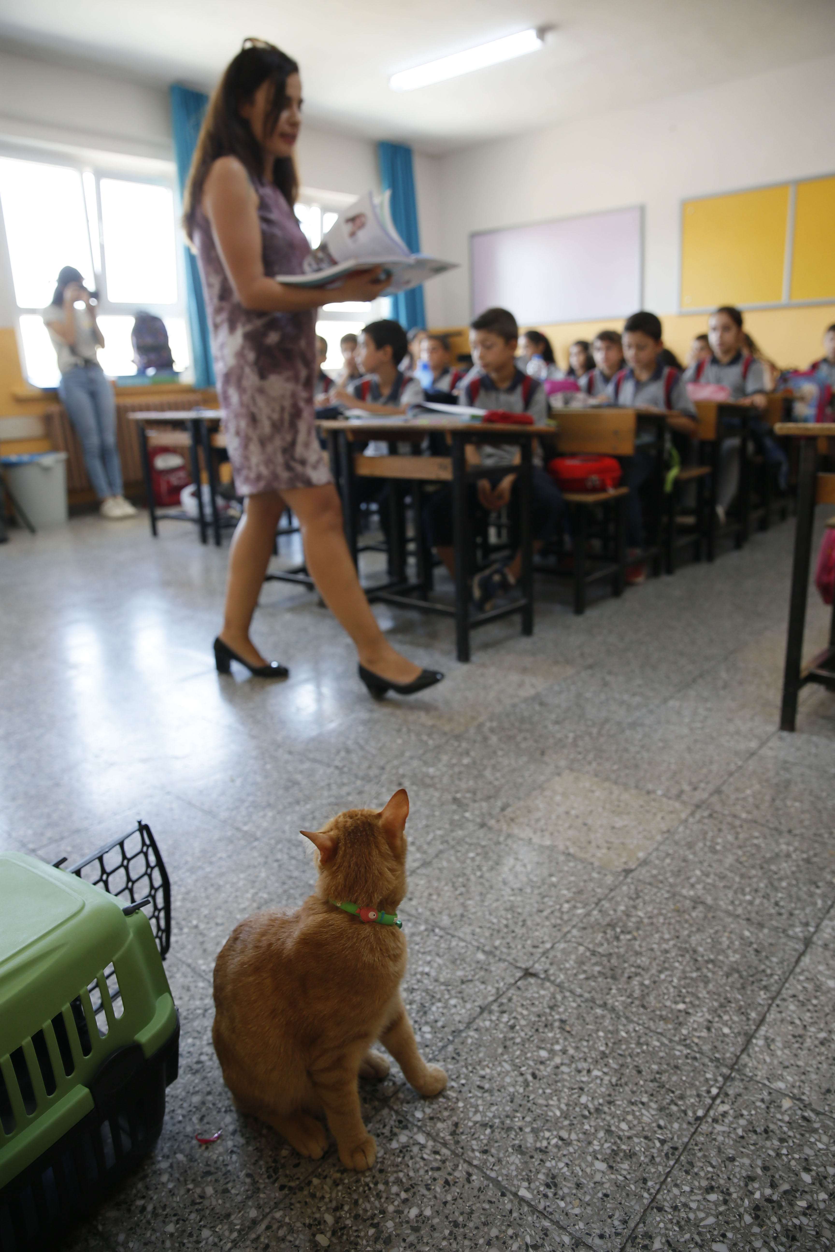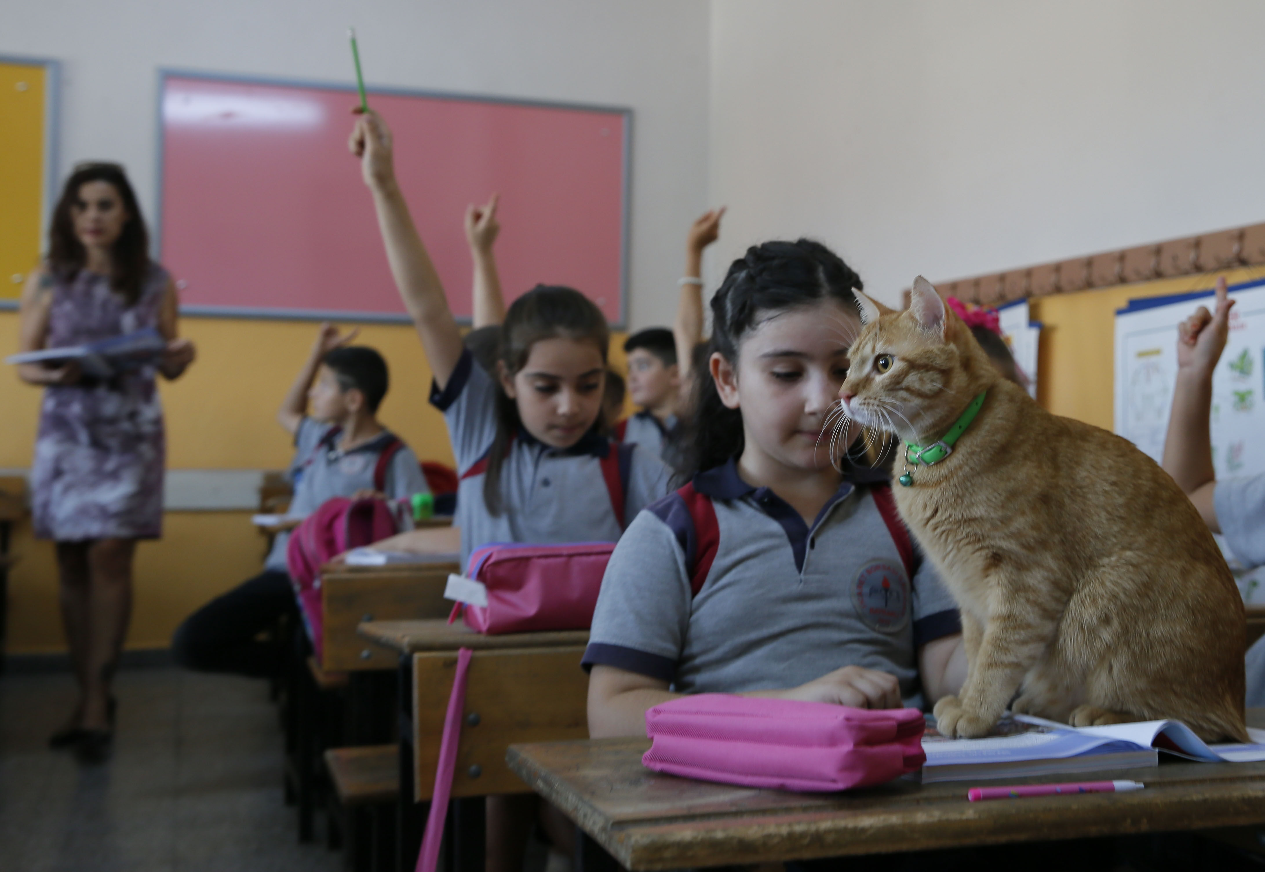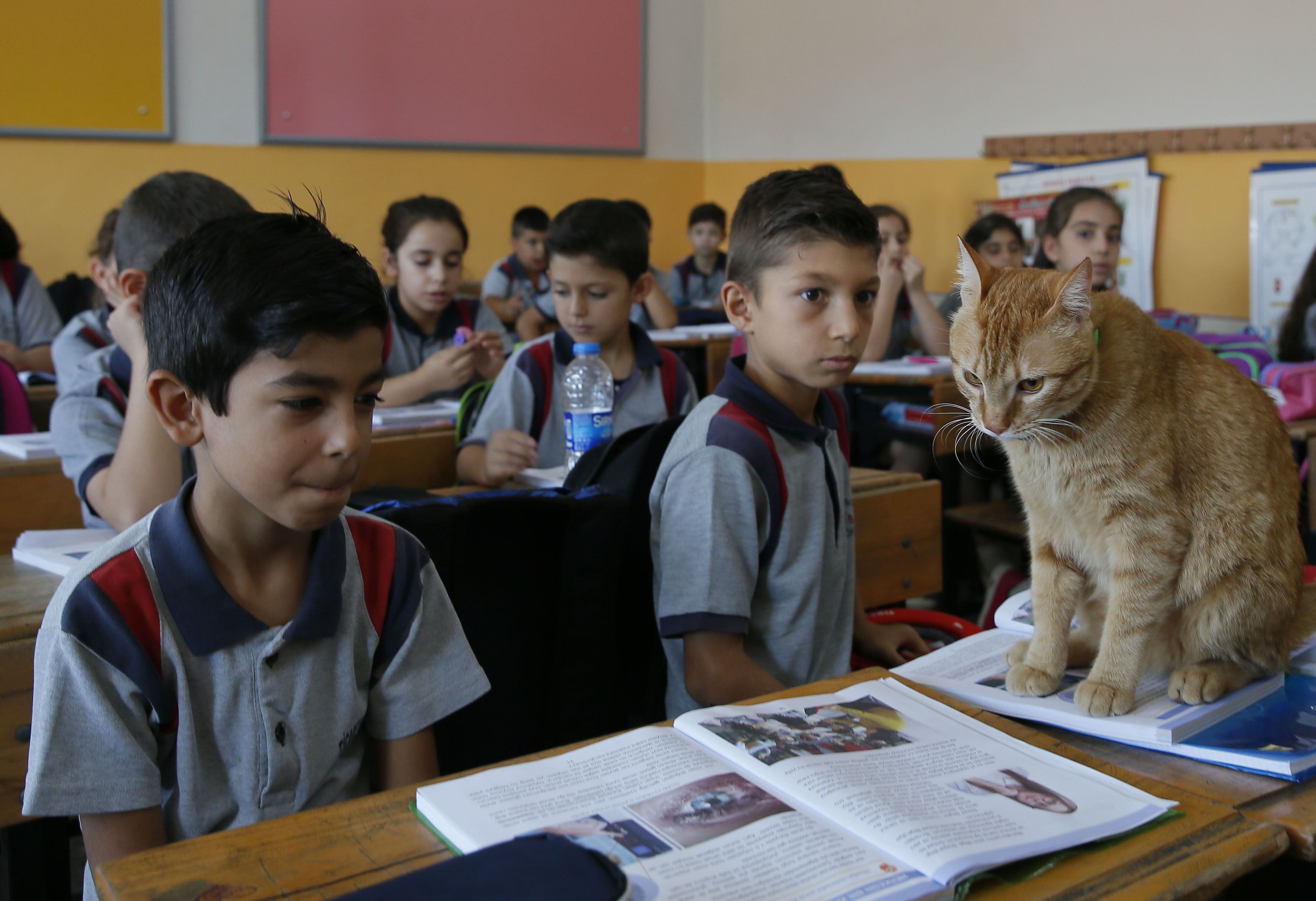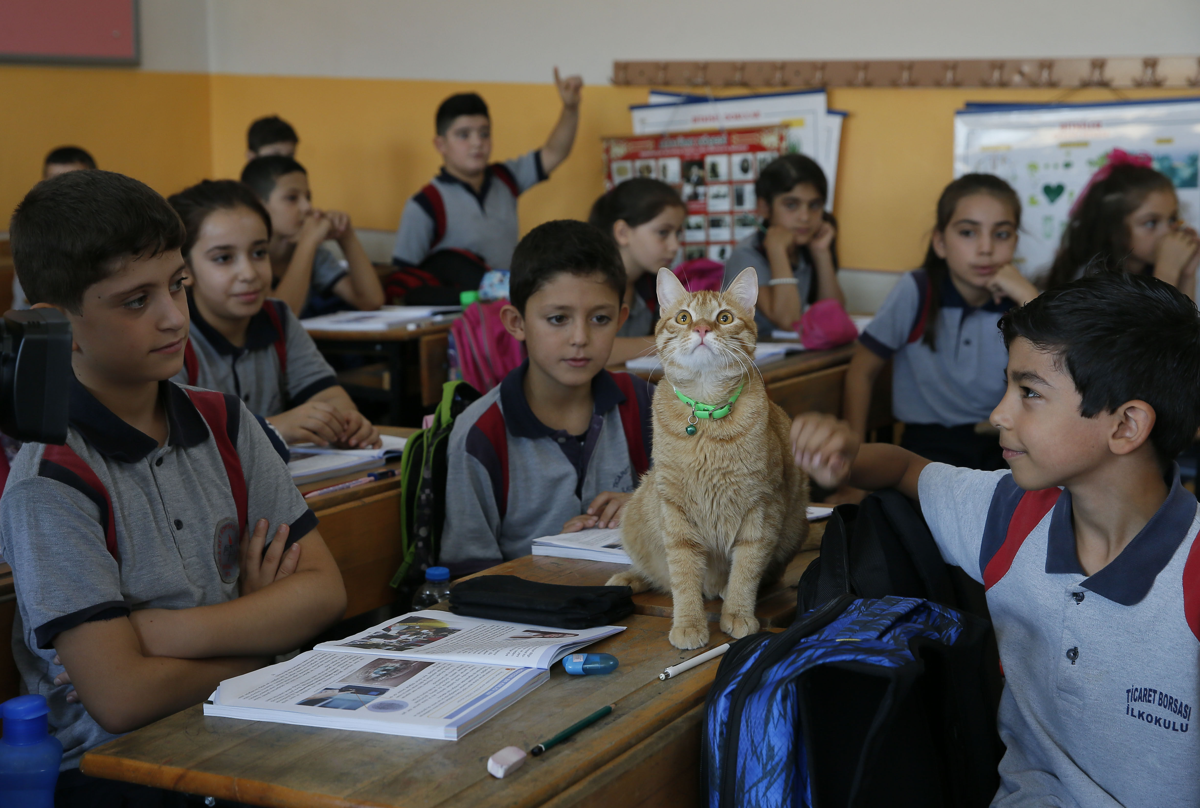 İzmir'de ilkokul öğrencilerinin sınıfta baktığı "Tombi" adlı kedi, yaz tatilinin ardından sınıftaki yerini aldı. Öğrenciler özledikleri kediye kavuşmanın sevinci yaşadı.