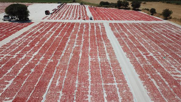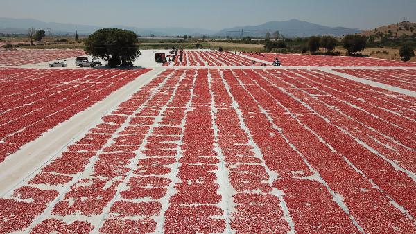 Güneşe bırakılan domateslerin rüzgar ve nemin durumuna göre 5 ile 7 gün arasında kuruduğunu anlatan Olgun, "Kuru domatesler, fabrikalara gönderiliyor ve yeni bir işlem başlıyor. Domatesler yıkanıyor ve tekrar güneşe bırakılıyor. Daha sonra zeytinyağı ve sarımsakla soslanarak paketleniyor. Ürünümüzün fazla olduğu dönemler var. Şu anda domates çok fazla. Bu yüzden meyve ve sebzelerin kurutulmasına önem veriyoruz. 21 bin hektarlık alanımızda domates yetişiyor ancak bunun hepsinin tüketilmesi mümkün değil. Meyve sebzelerin kurutulması son dönemde oldukça yaygınlaştı. Bu sene 100 milyon dolar ihracat hedefimiz var. ABD, Almanya, Belçika, Japonya gibi toplamda 100'e yakın ülkeye gönderiliyor. Kurutulmuş domatesler pizza, makarna, sandviç gibi yiyeceklerde yoğun olarak kullanılıyor" diye konuştu.