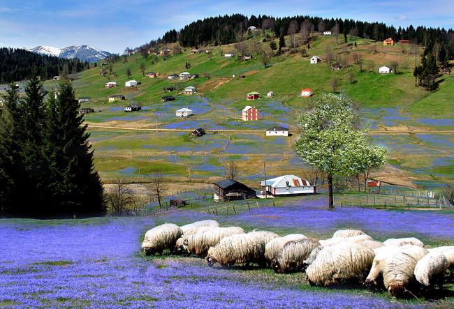 İlkbaharın gelişiyle dağlarının karla kaplı olduğu, yeşilin farklı tonlarını sunmaya başlayan yayla, mavi yıldız çiçekleriyle renk çümbüşüne dönüştü.