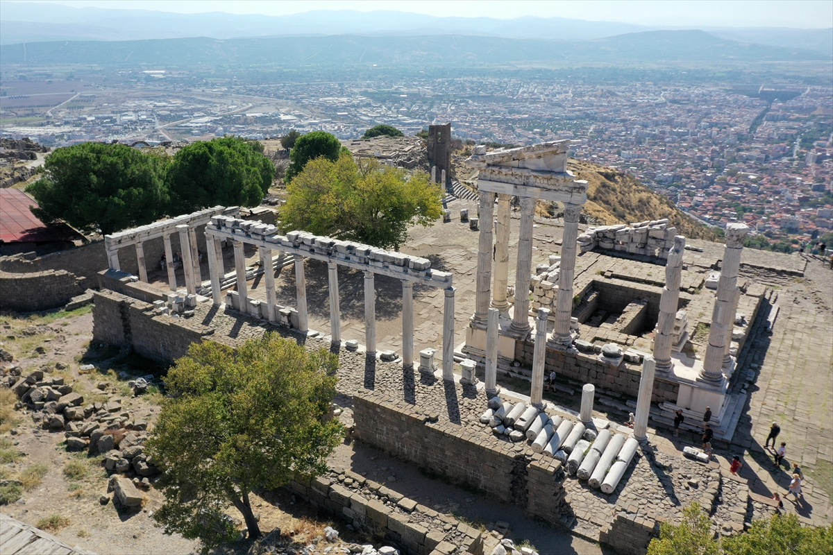 Helenistik, Roma, Doğu Roma ve Osmanlı dönemlerine ait izler taşıyan antik kentte, Asya Kıtası'nda kurulan en büyük kütüphane de yer alıyor. Tarihte ilk parşömen üretiminin yapıldığı Pergamon'daki kazılar, Kültür ve Turizm Bakanlığı izniyle Alman Arkeoloji Enstitüsü ekibi ve Türk uzmanlarca sürdürülüyor.