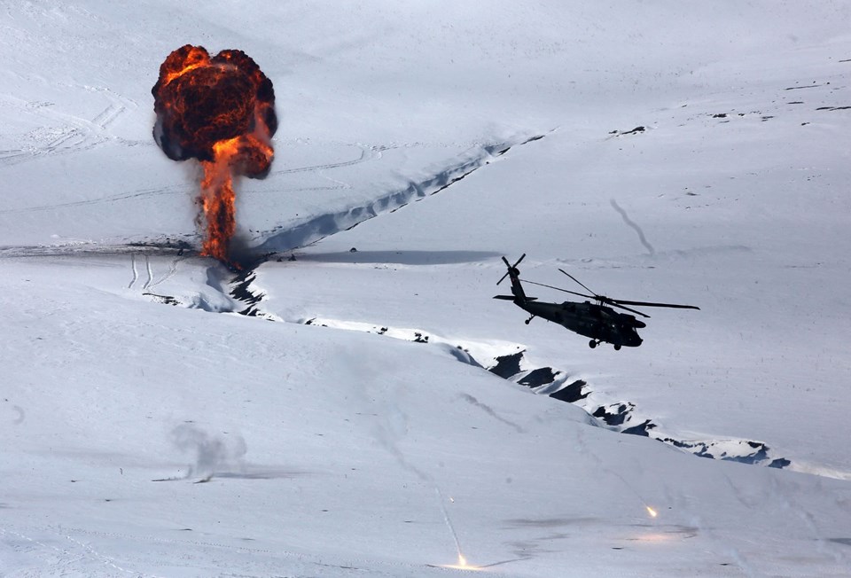 Komandolar, önceden belirlenen düşman mevzilerine Skorskylerle getirildi. Karlı tepeye iniş yapan komandolar, kayaklarla kayarak hedefin olduğu noktaya ilerledi. ATAK helikopterleri ise komandoların güvenliğini üstlendi.