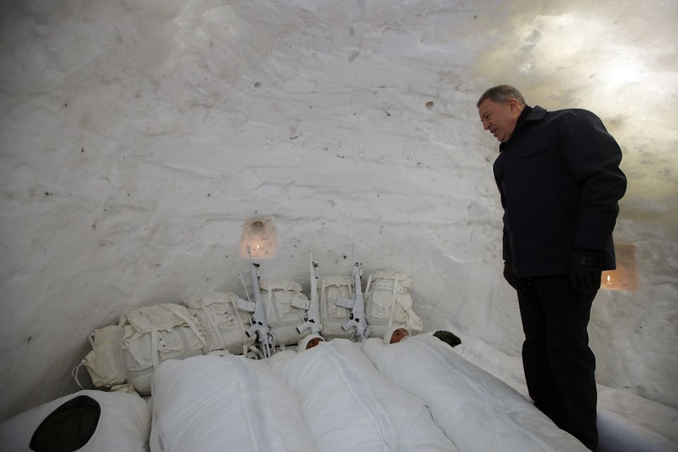Komandolar, tatbikat kapsamında çetin kış şartlarında soğuktan korunmak için kardan sığınaklar yaptı. Gözlem kuleleri ve yatacak odaların yapımı için 100 ton kar kullanıldı.