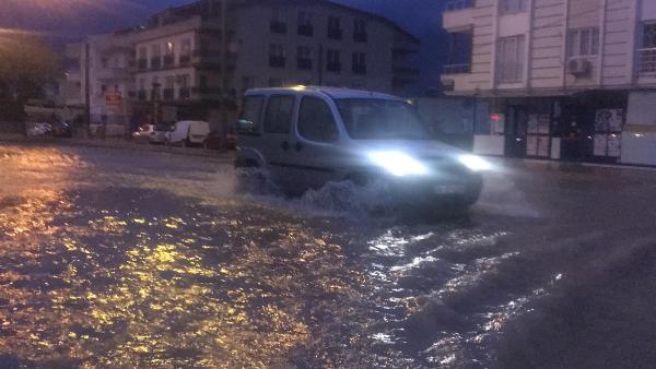 İlçede gece boyunca etkisini sürdüren kuvvetli sağanak dolayısıyla cadde ve sokaklarda su birikintileri oluştu.