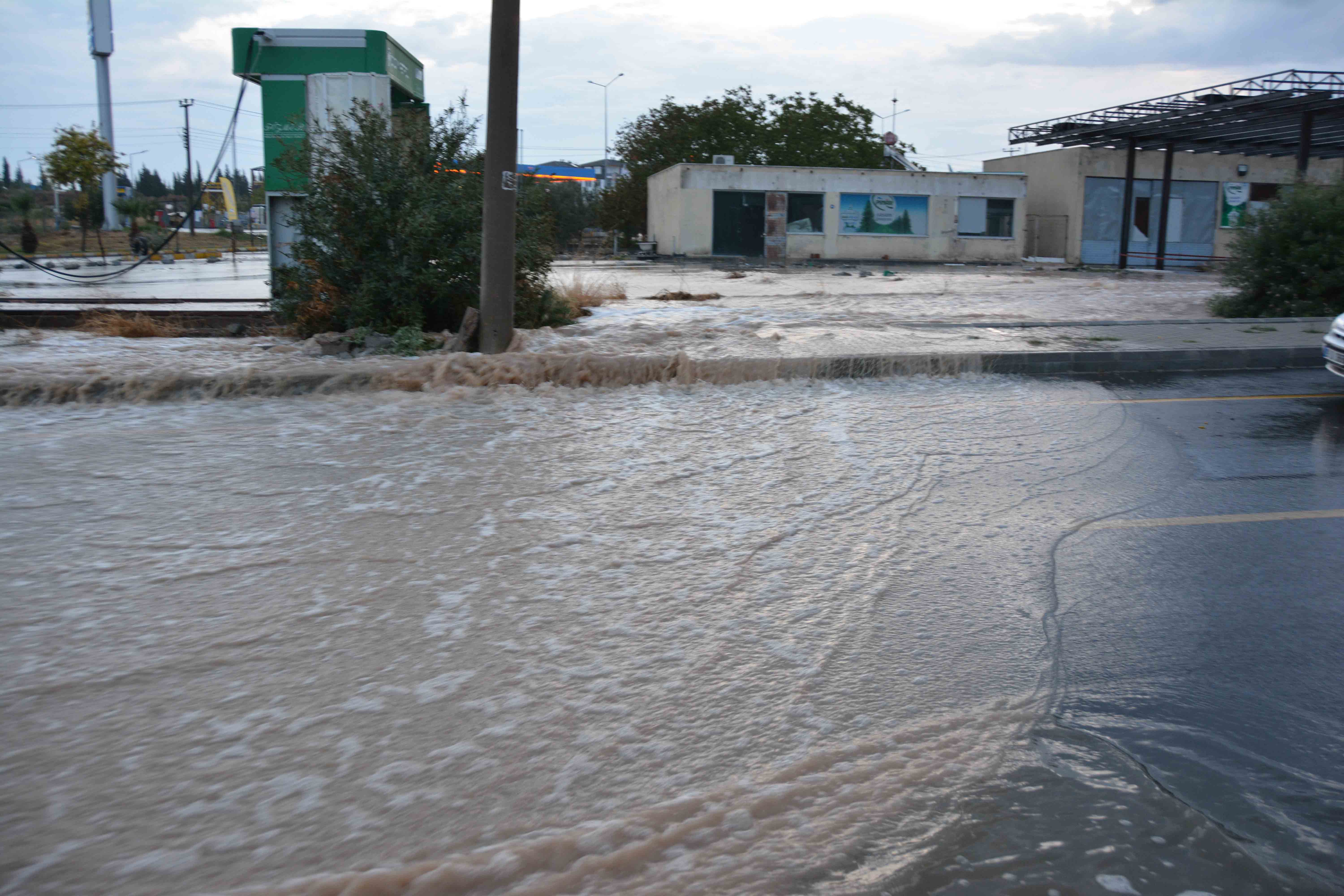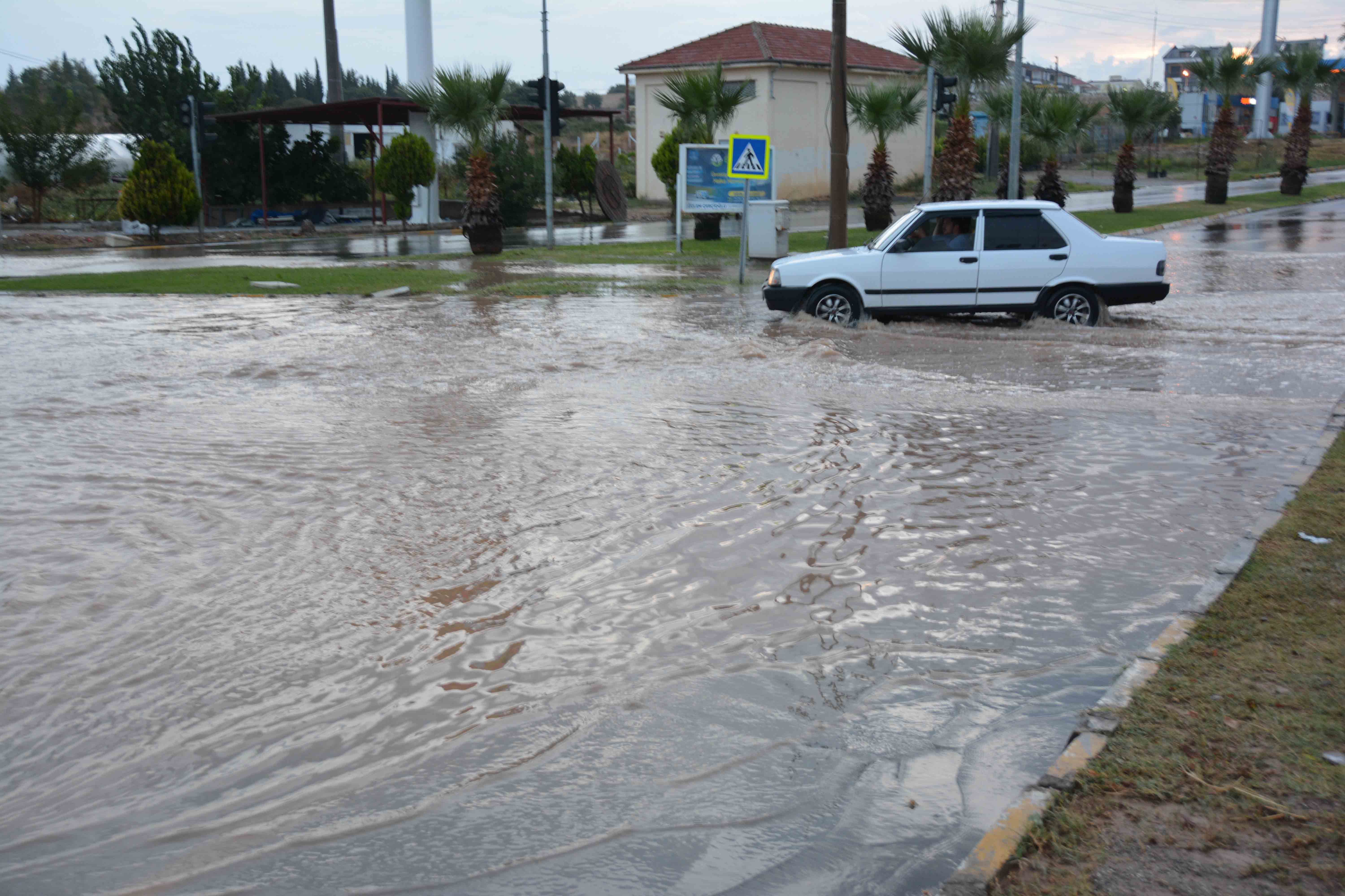 Cumhuriyet ve 19 Mayıs caddeleri ile Atatürk, İnönü, Adnan Menderes bulvarları ve ilçe merkezindeki ana arterlerde rögarların tıkanması sonucu oluşan su birikintileri, trafikte aksamalara neden oldu.