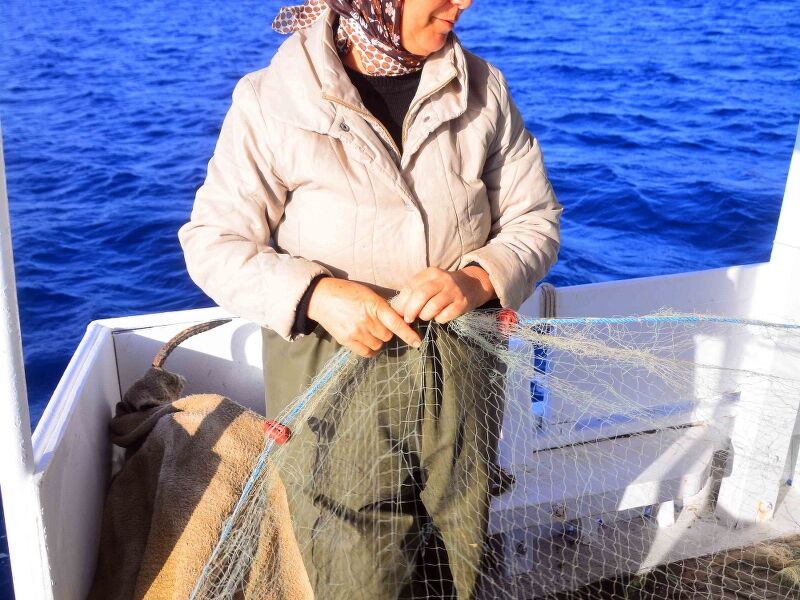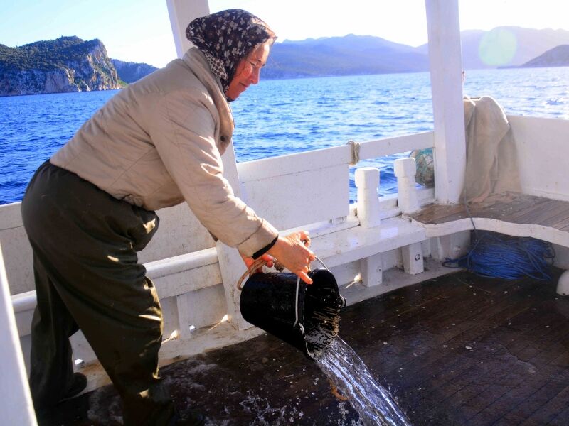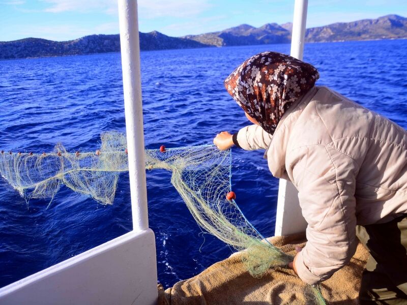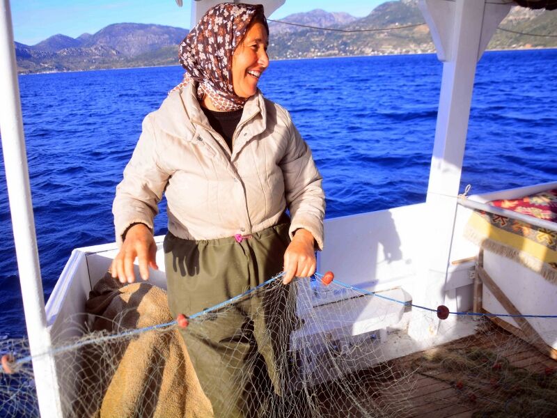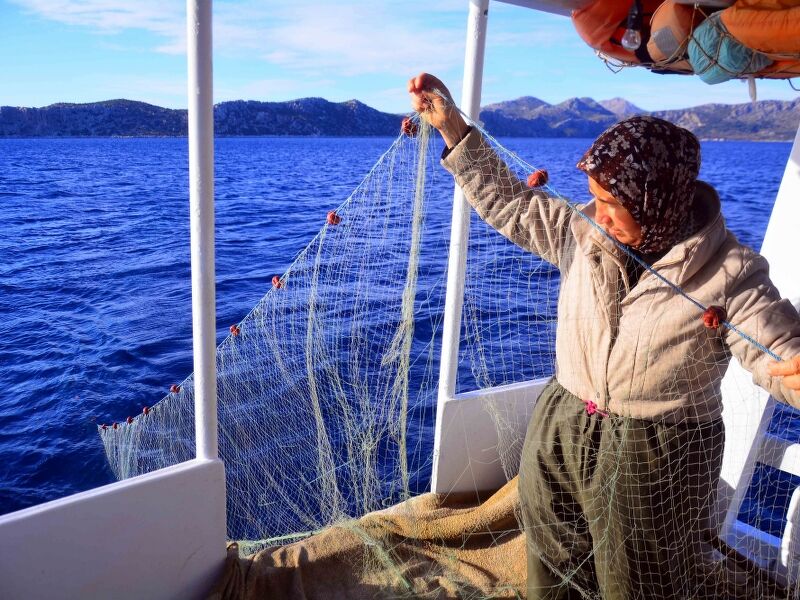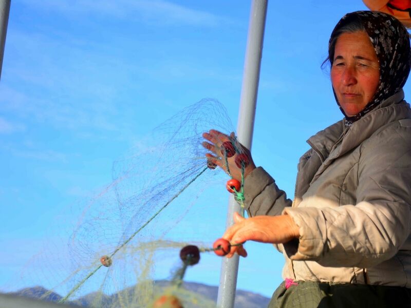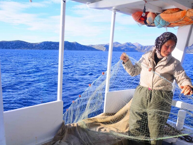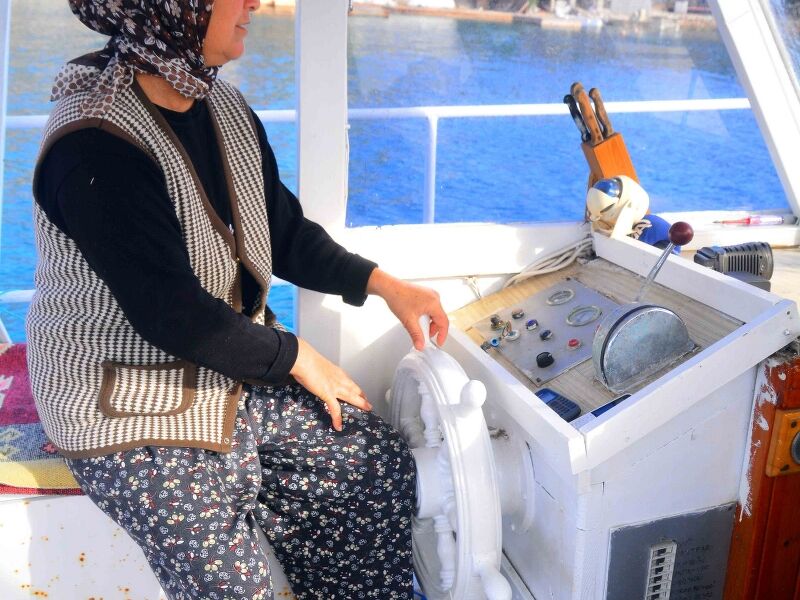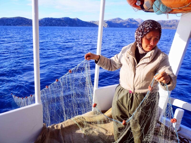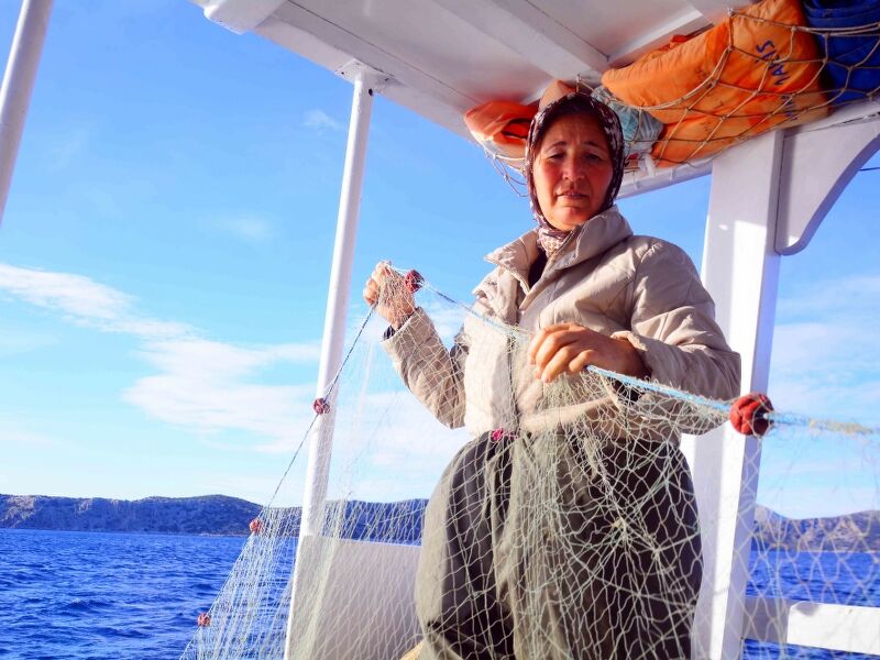 Bozburun Yarımadası'nda her gün güneşin doğuşuyla, ortalama boyları 8 ila 10 metre arasındaki tekneleriyle balığa çıkan kadınlar, hem tekne kullanıp ağ atıyor hem de ağları topluyor.