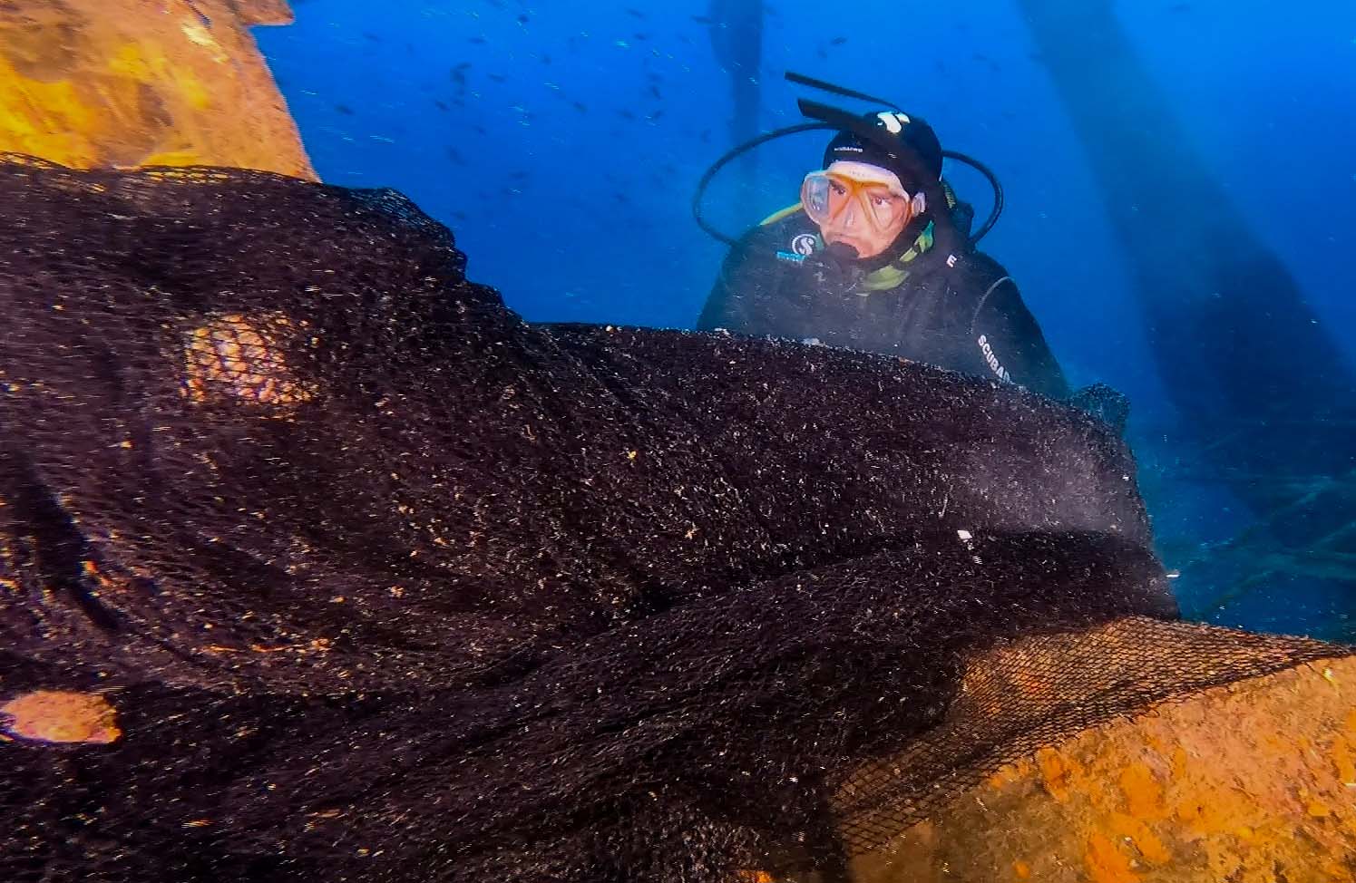 Su altı fotoğrafçılarının ilgisini çeken, yerli ve yabancı turistlerin de uğrak noktası olan, bilinirliği her geçen gün artan 9 Eylül batığı, hayalet ağ ile görünmez oldu.