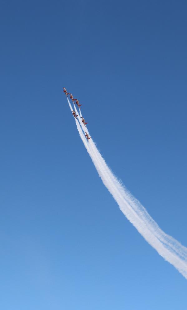 Afyonkarahisar Hava Meydan Komutanlığı'ndan kalkan 6 uçak ilk olarak Hıdırlık Mesire Alanı ile Karahisar Kalesi arasına ay yıldız figürü çizdi, ardından da şehrin üzerinde akrobatik hareketler yaptı.