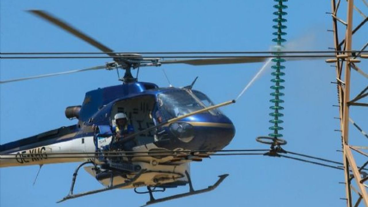 Yüksek gerilim hatlarında zamanla kirlilik ve çevre koşullarına bağlı iletim performansı azalan izolatörler (yalıtkan malzeme), helikopterden sıkılan saflaştırılmış suyla temizleniyor.
