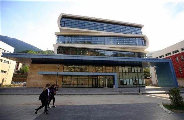 Artvin Çoruh Şehir yerleşkesinde 4 bin 500 metrekare alan üzerine inşa edilen kütüphane, üç kitabın bir masa üzerine simetrik olarak konumlandırılmış görüntüsüyle dikkat çekiyor.