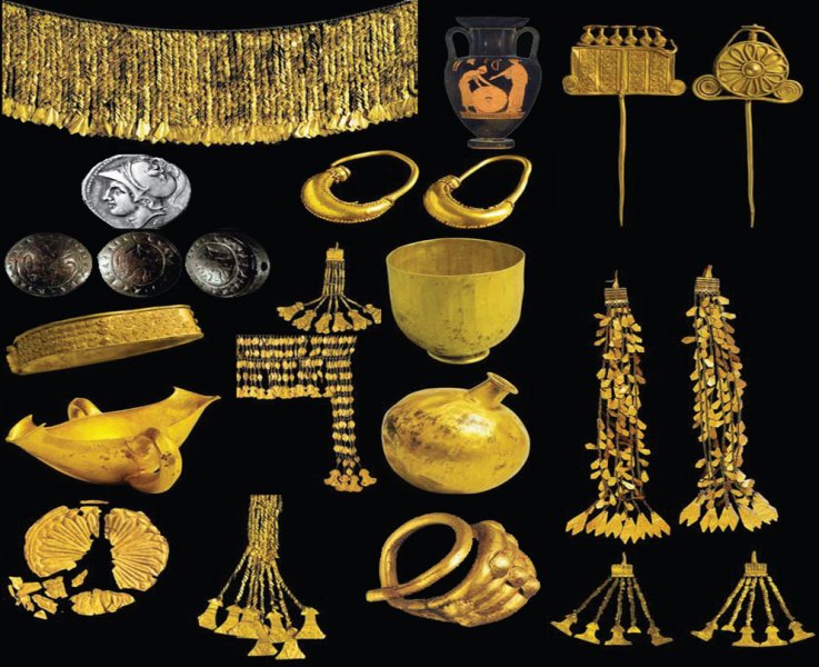 Resimde görülen aklınlık, küpe vb. diğer Troya hazinelerinin tamamına yakın bir kısmı ise Rusya'dadır.