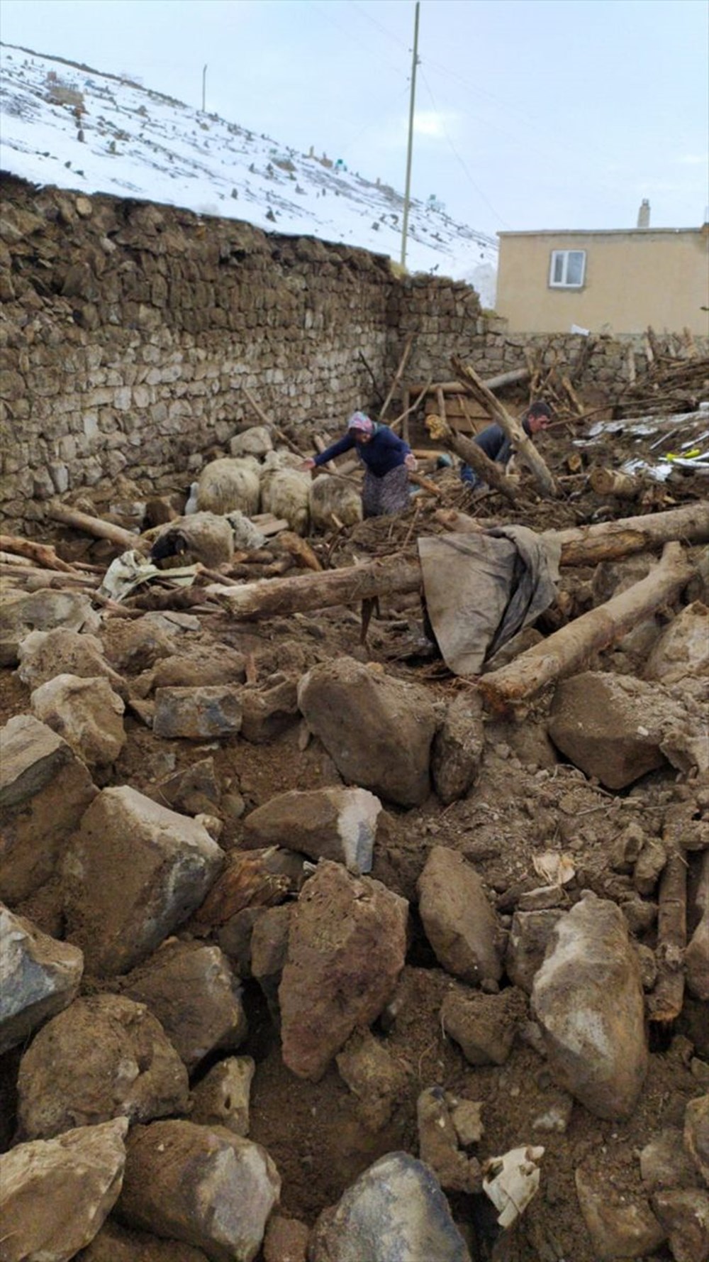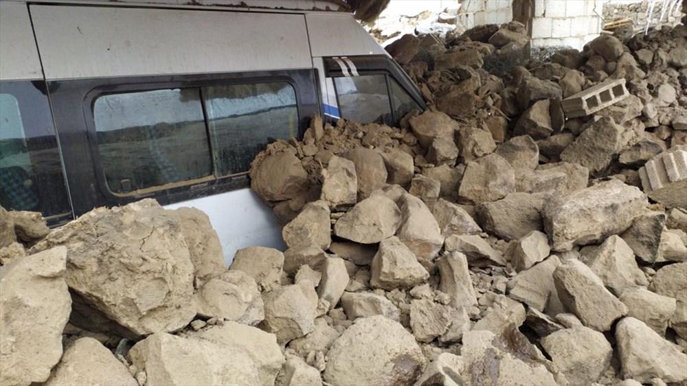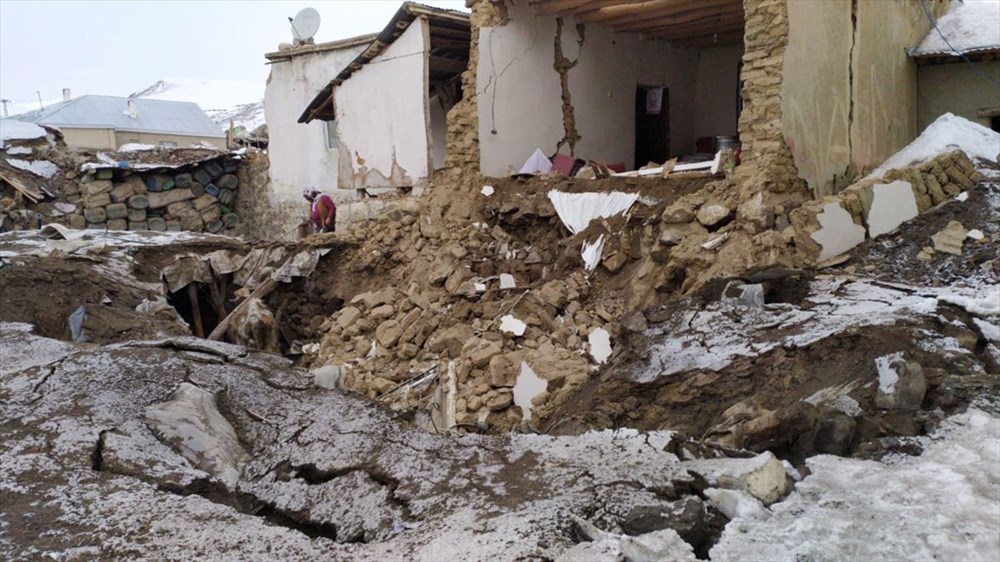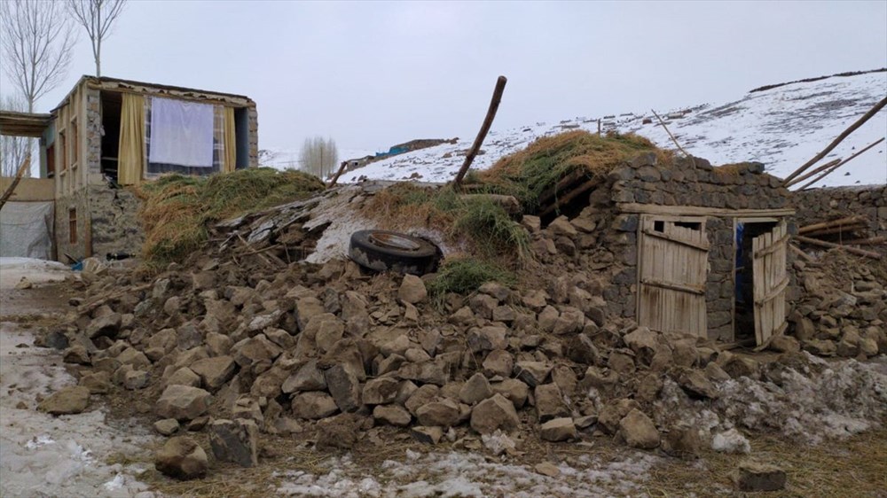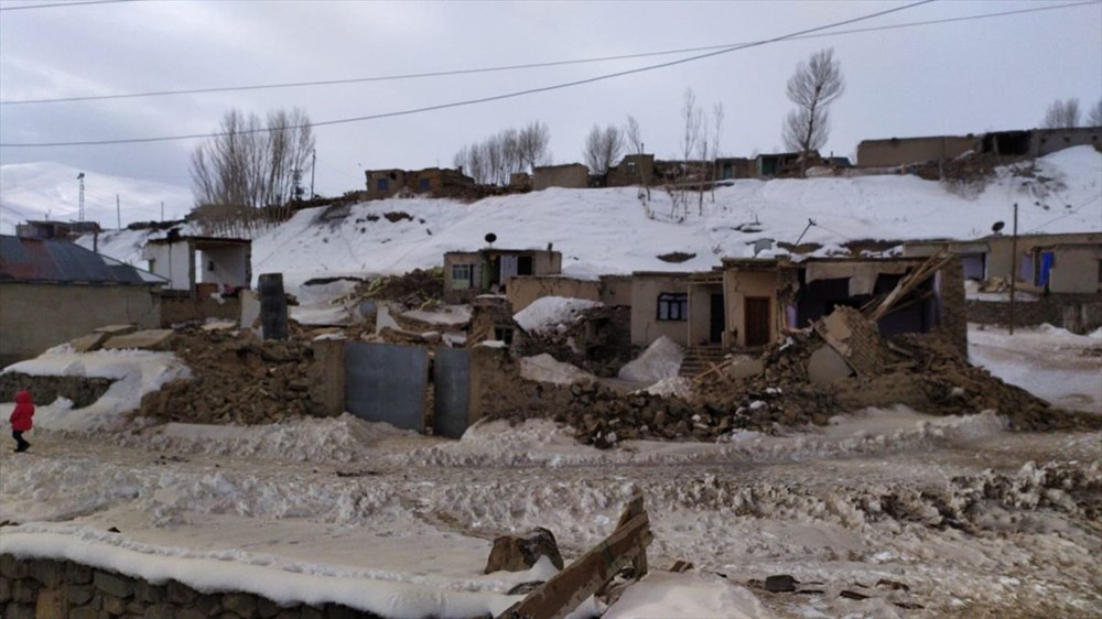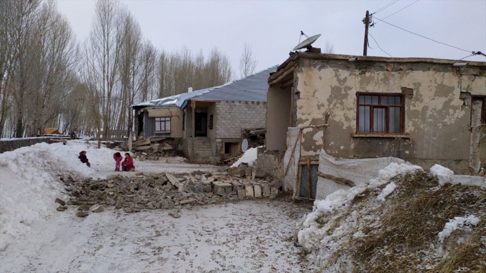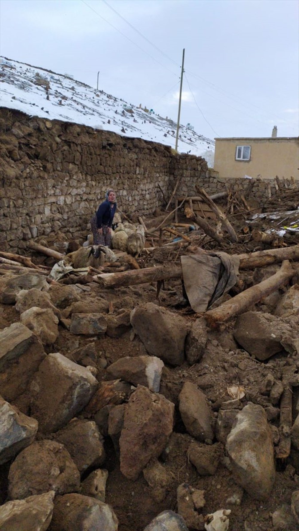 Başkale ilçesi Gelenler Köyü'nde hissedilen depremde, kerpiçten yapılan evlerin yıkıldığı görüldü. (NTV-AA)