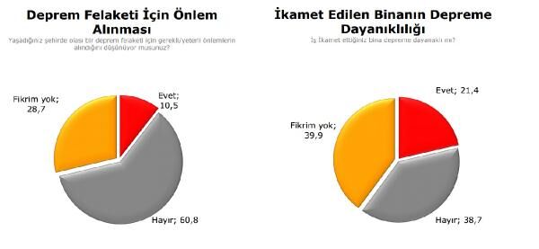 Prof. Dr. Aydın, depreme yönelik herhangi bir hazırlık yapılmadığını vurgulayarak, "Birçok ilde deprem tehlikesi var genel kanaat devletin yeterince bu yönde hazırlık yapmadığı oldu. Ama biz kişisel olarak hazırlık yaptılar mı diye sorduk.