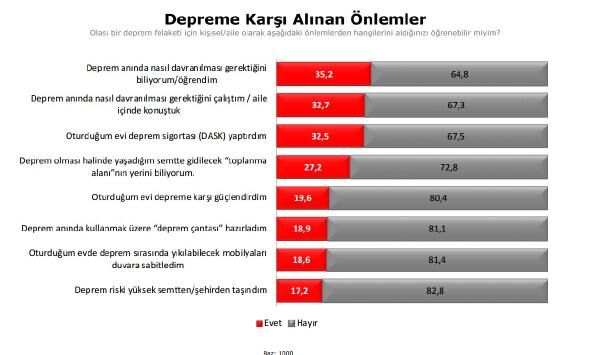 Orada net bir şey ortaya çıkıyor ki toplumun sadece 5'te 1'i depreme karşı önlem almış. Onun dışında bir hazırlık yok" diye konuştu.