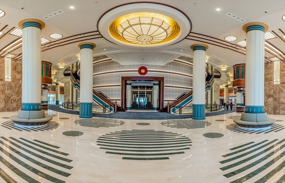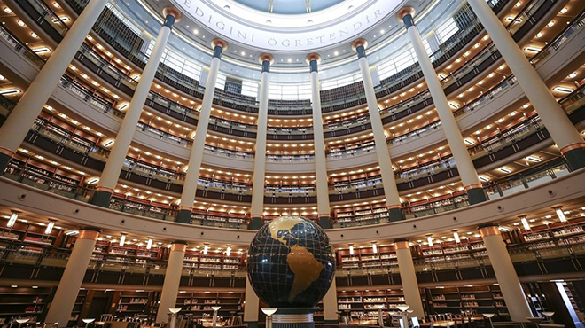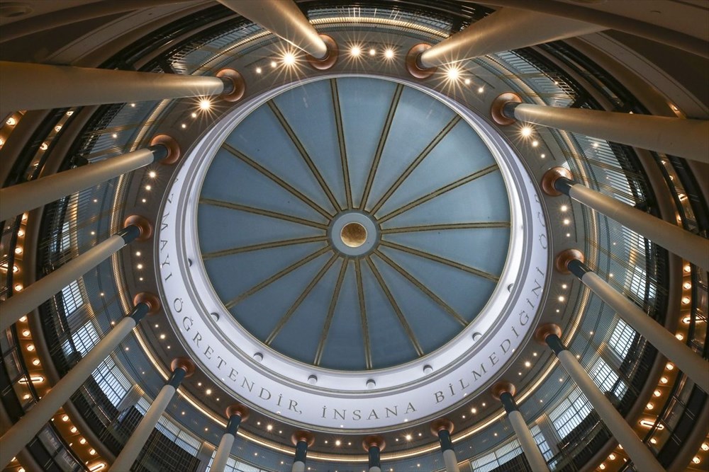Tarihteki 16 Türk Devletini temsilen 16 sütunun bulunduğu Cihannüma Salonu, 3 bin 500 metrekare alanda, 224 kişilik oturma kapasitesi ve yaklaşık 200 bin kitaptan oluşan koleksiyona sahip. Salonun kubbesinde, Alak Suresi'nin "O, kalemle yazmayı öğretendir, insana bilmediğini öğretendir" şeklindeki 4 ve 5. ayetleri yazıldı.
