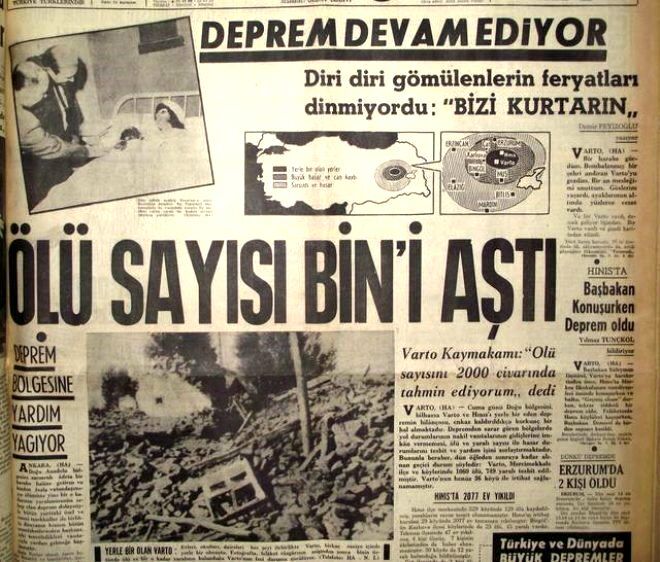 Muş'un Varto ilçesinde 19 Ağustos 1966'da 6,9 büyüklüğünde deprem yaşandı. Bu deprem, ülke tarihinde büyük hasarlara yol açan depremlerinden bir tanesi olarak biliniyor. Aynı yıl içinde Varto'da 2 ayrı sarsıntı oldu. İlki 7 Mart'ta 14 kişinin ölümüyle ve 75 kişinin yaralanmasıyla, ikincisi ise 19 Ağustos'ta 2 bin 394 kişinin ölümü ve 1500'e yakın kişinin yaralanmasıyla sonuçlandı. Daha sonra 1967'de 7,2 büyüklüğünde Mudurnu, 1970'te de 7,2 büyüklüğünde Gediz depremleri oldu.