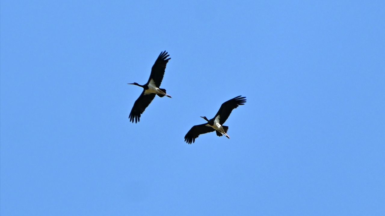 Türkiye'de nadir görülen kuş türlerinden kara leylek, Manisa'nın Ahmetli ilçesindeki Gediz Nehri'nde görüntülendi.