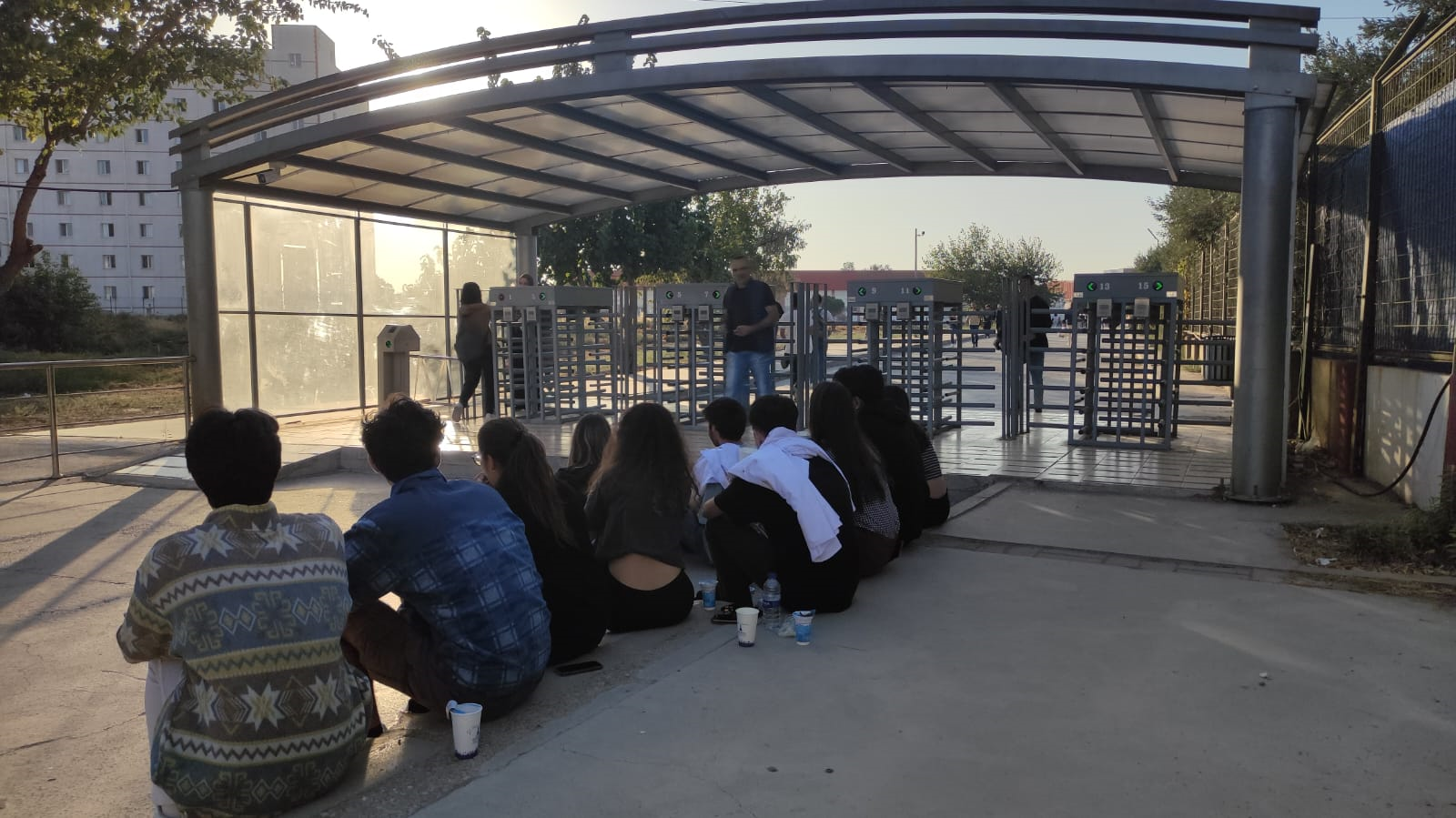 İzmir Büyükşehir Belediyesi’nin öğrencilere ücretsiz olarak dağıttığı yemek servislerinin Kâtip Çelebi Üniversitesi Rektörlüğü tarafından içeriye alınmaması sebebiyle öğrencilerin üniversite kapısının önünde dışarıda yemek yedikleri ortaya çıktı.
