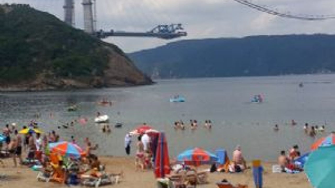 İstanbul'da etkili olan sıcak havadan bunalanlar, üçüncü köprüyü gören plaja kendilerini attı.