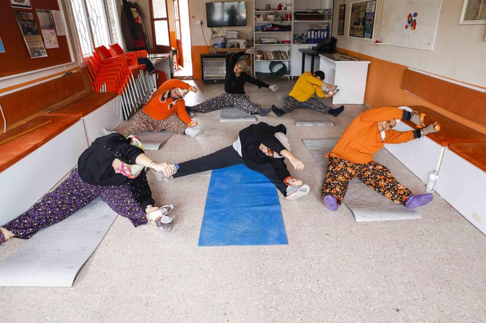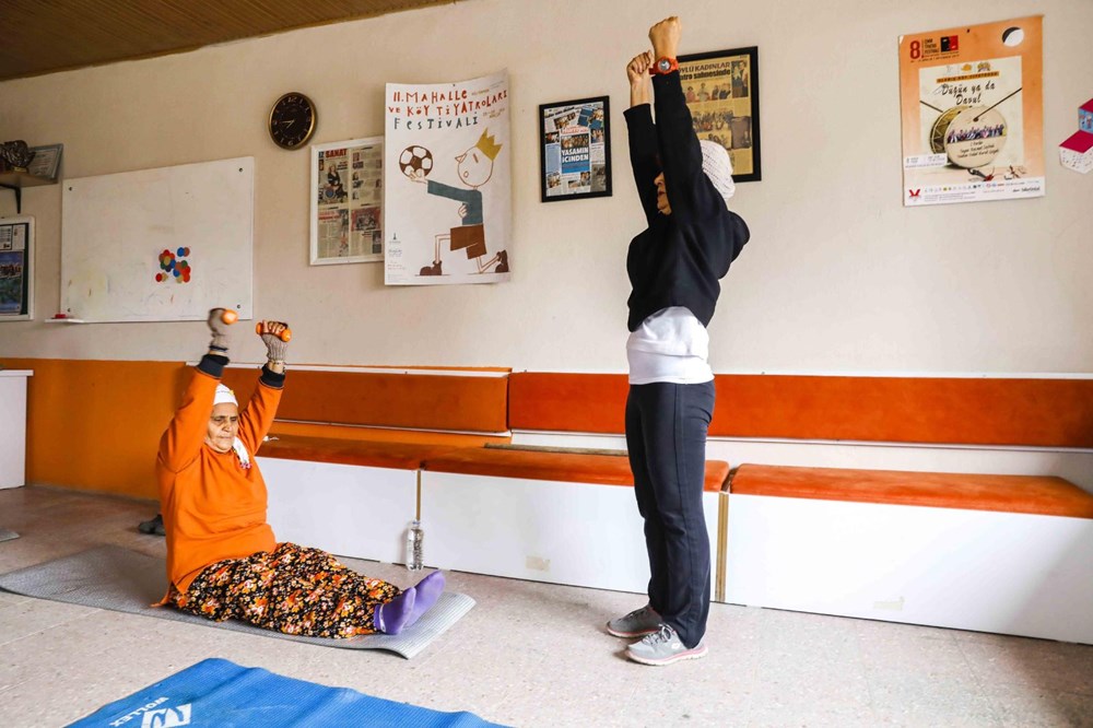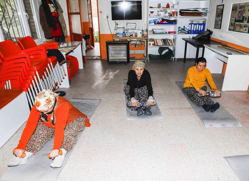 Corona virüs nedeniyle hem sağlık hem de sosyalleşme anlamında zor günler geçiren kadınlar, pilates eğitimi alıyor.