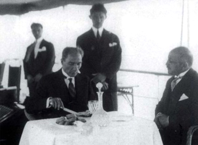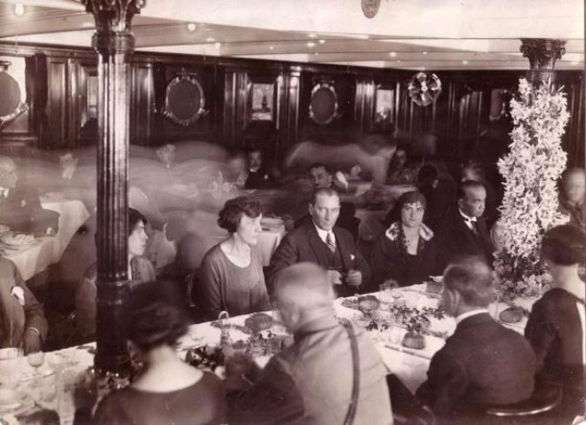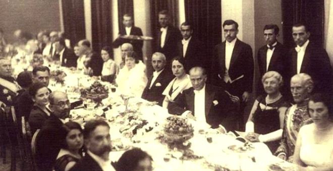 Yalnız başına yemek yemekten hoşlanmayan Mustafa Kemal Atatürk, sofrasının hep kalabalık olmasını isterdi. Genellikle az yer ve sofradan tok kalkmazdı. Müzik olsun isterdi ve zaman zaman saz heyetlerine kendisi de eşlik ederdi.