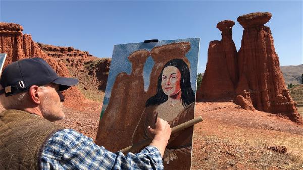 Erzurumlu ressam Mustafa Turanoğlu, Narman ilçesindeki peribacalarını tanıtmak için farklı çalışmaya imza attı.