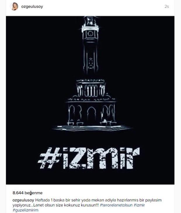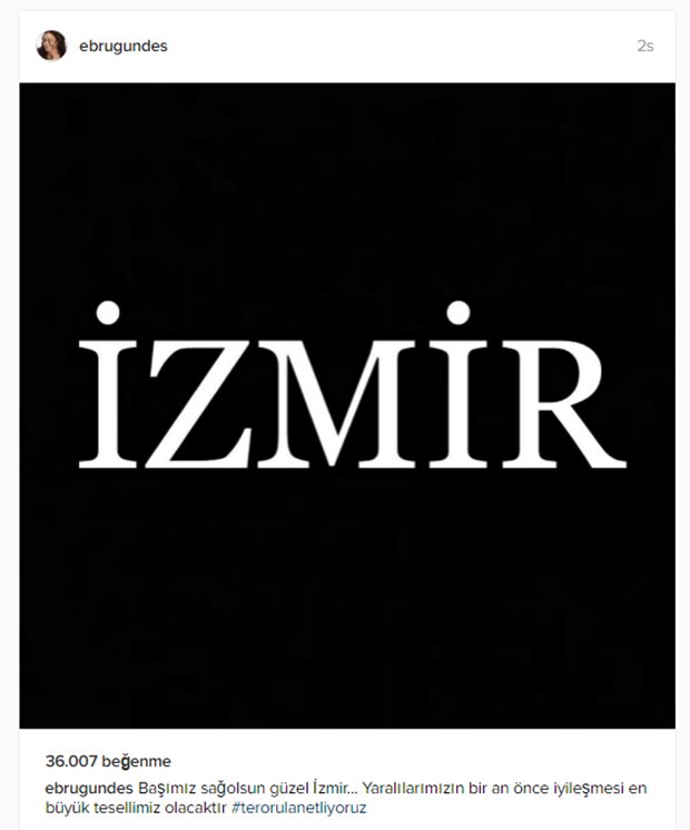 İzmir'de düzenlenen terör saldırısına sosyal medyada tepki yağdı. Ünlü isimler teröre lanet yağdırdı. İşte o paylaşımlardan bazıları...