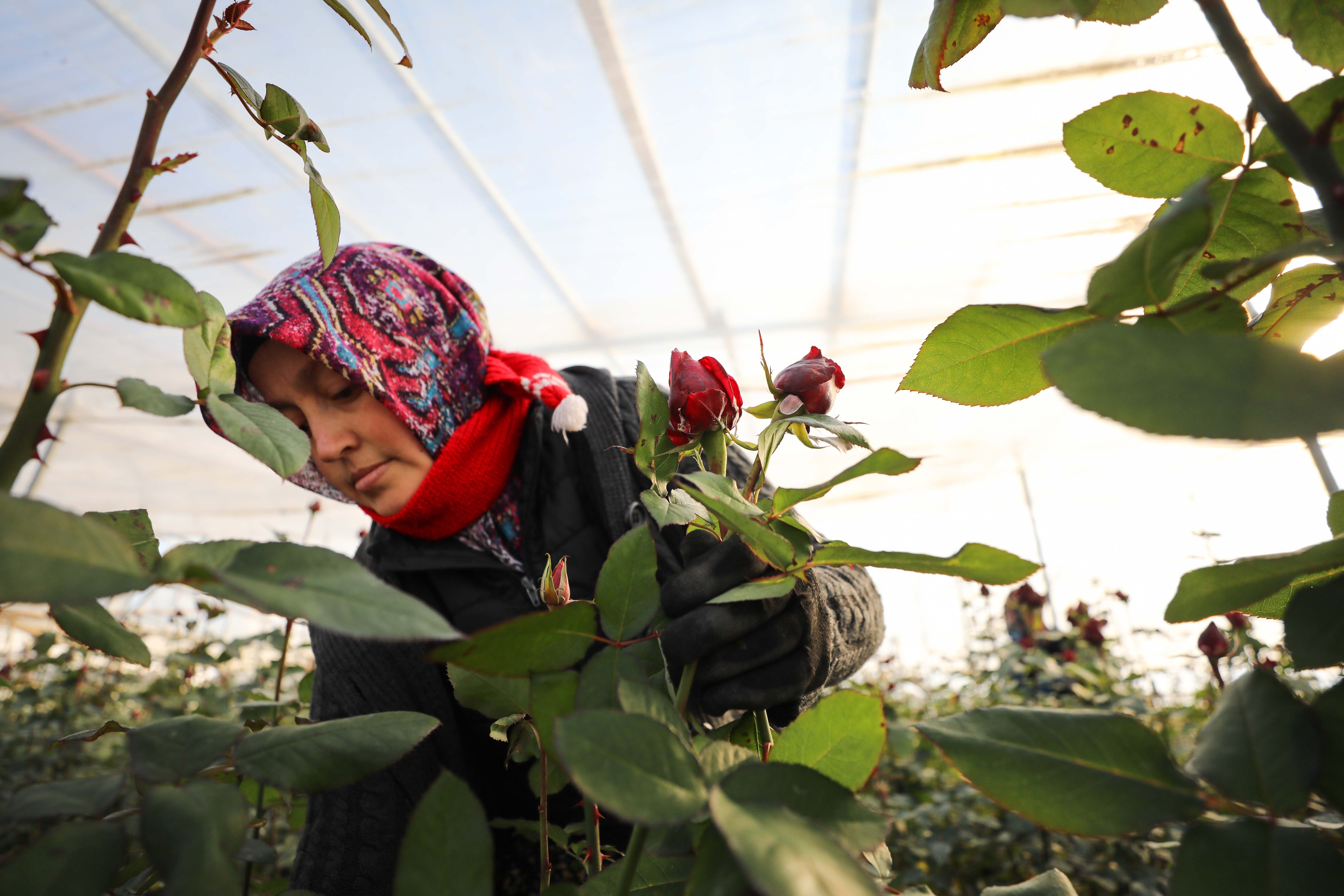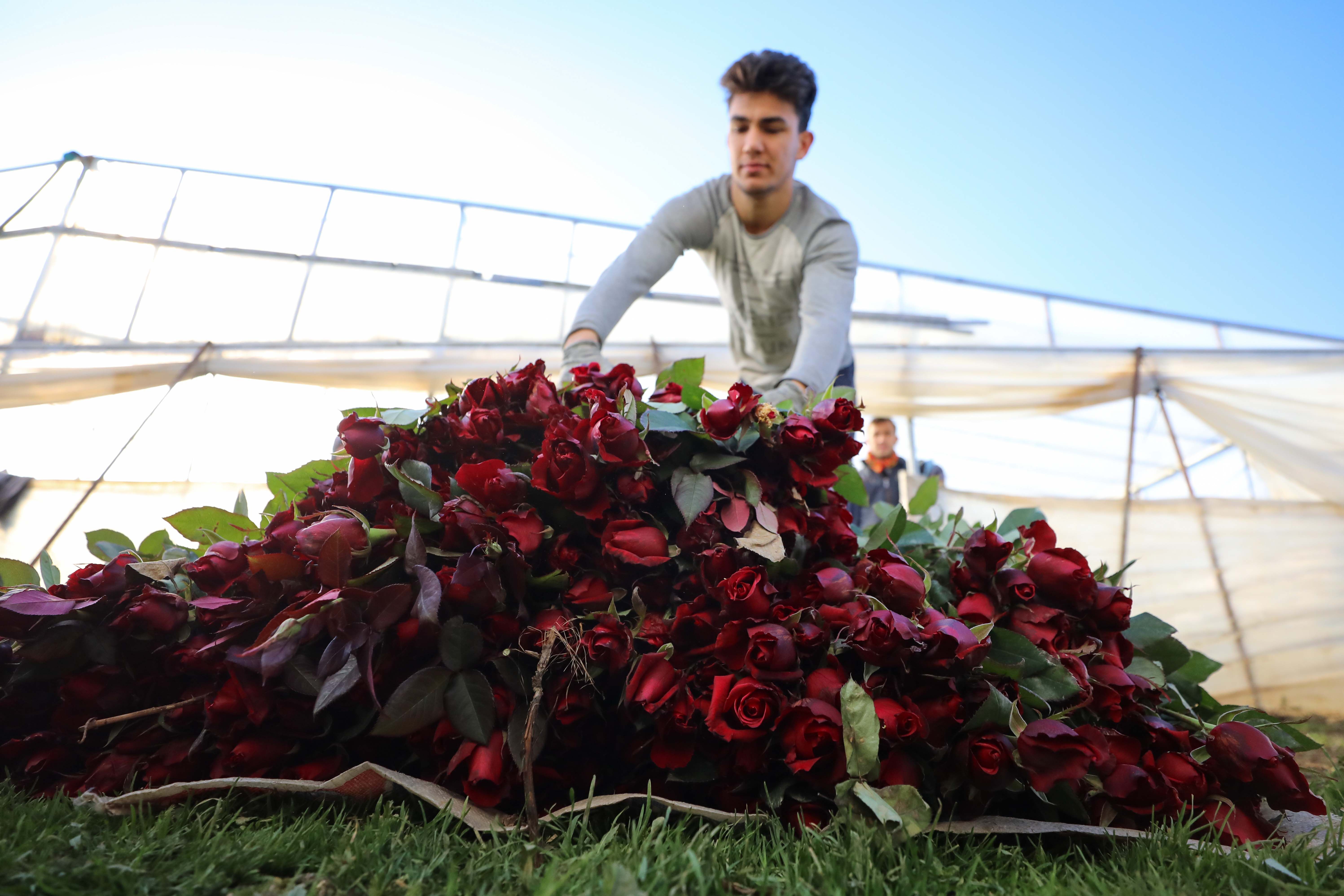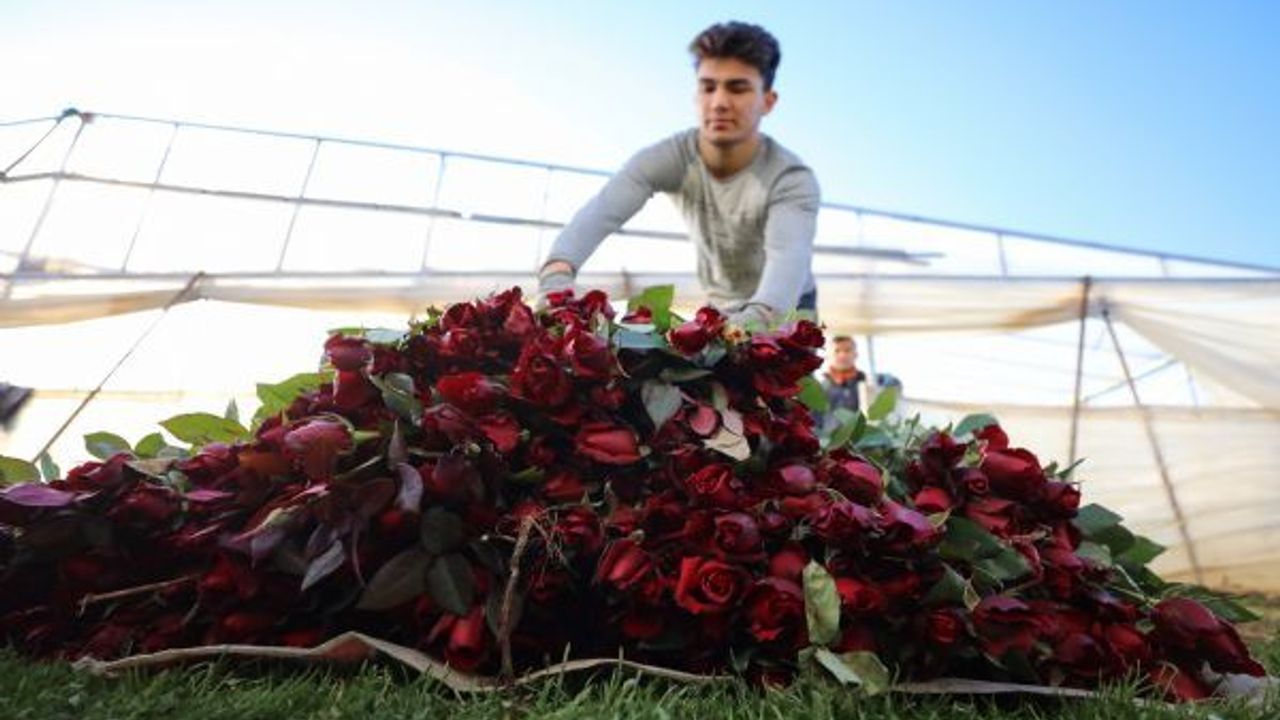 Türkiye'nin önemli kesme çiçek üretim merkezlerinden İzmir'in Menderes ilçesinde, 14 Şubat Sevgililer Günü nedeniyle talebin arttığı gülde hasat telaşı yaşanıyor.
