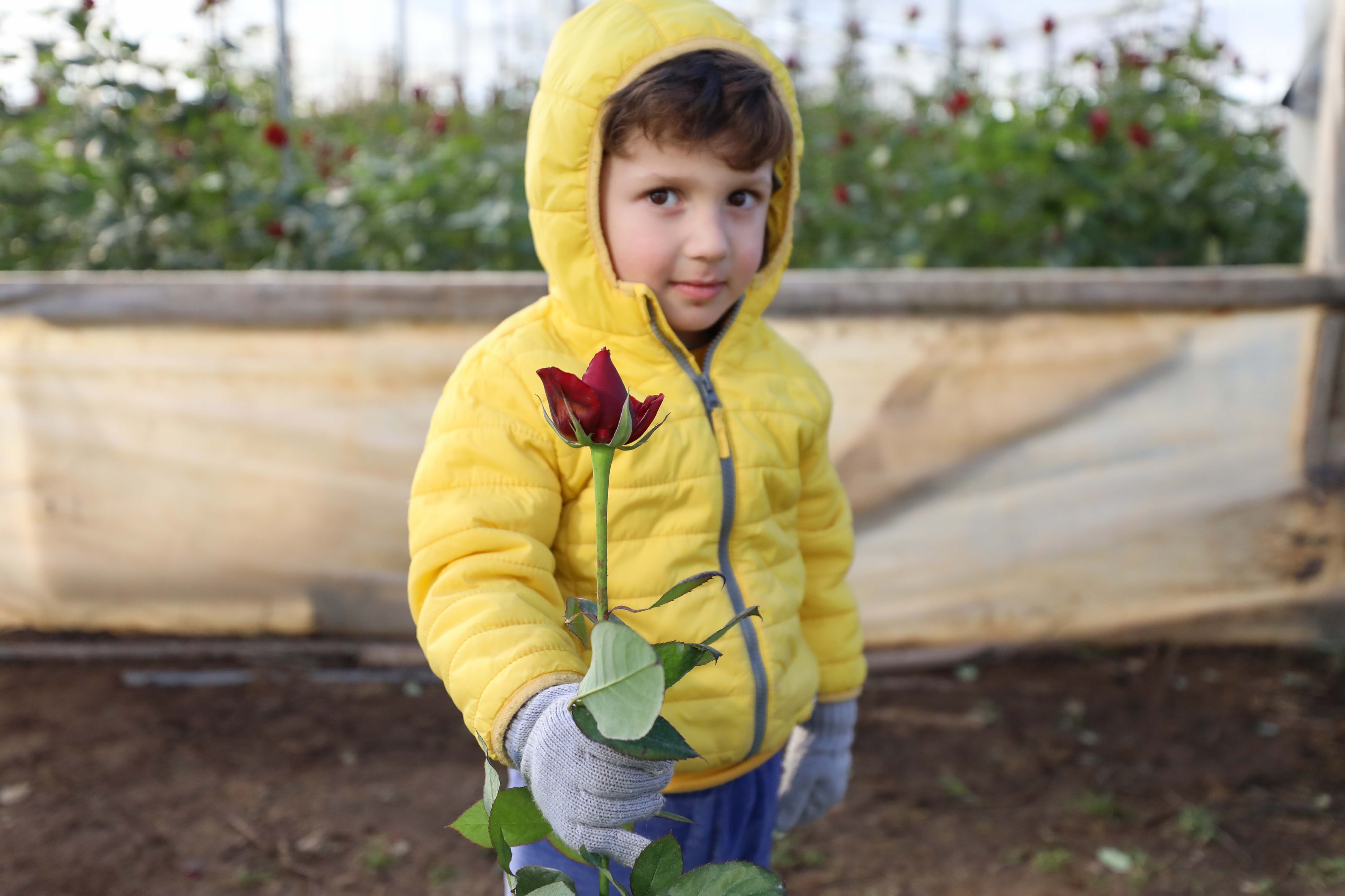 Üzerinde çift naylonu var, fıskiye sistemi var. Soğuktan iyi korumak gerekiyor. Bu sene gülün kalitesi iyi. Nem çok olmadı, gülün sevdiği poyraz vardı.